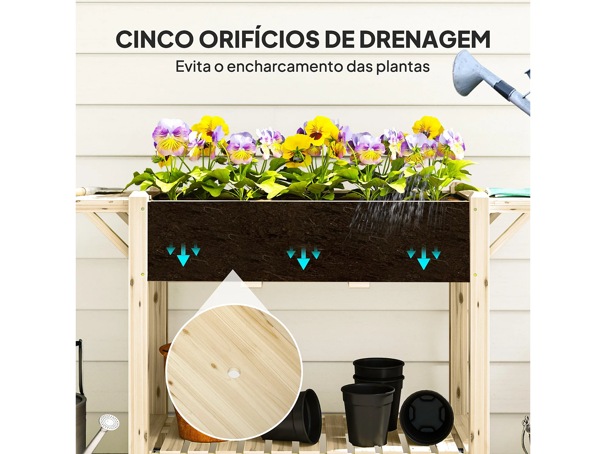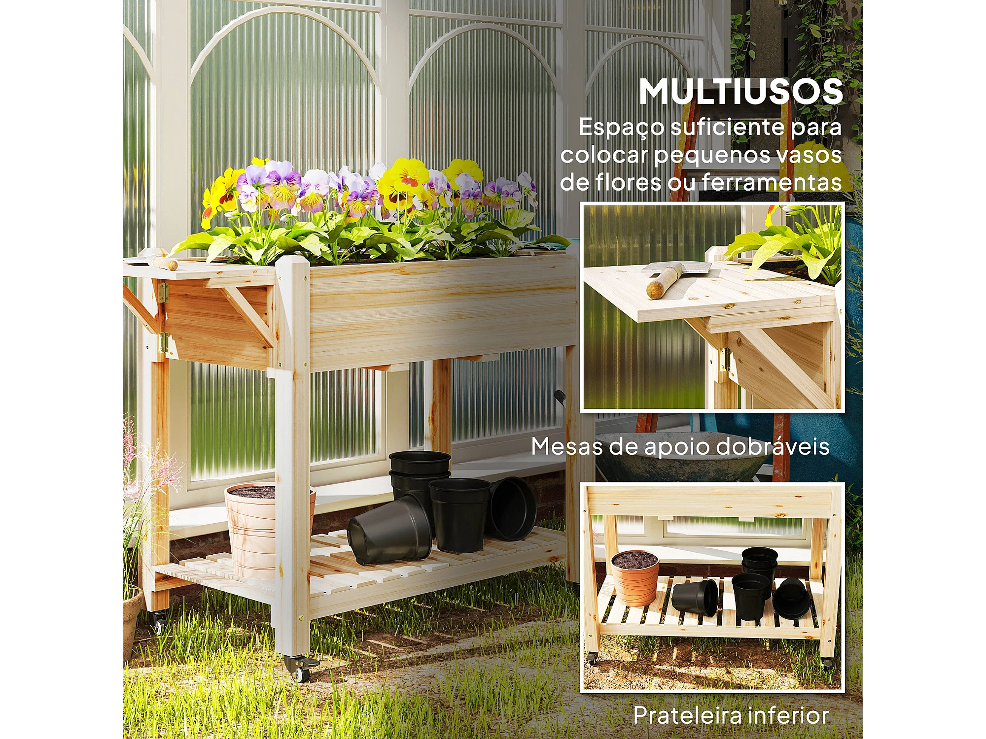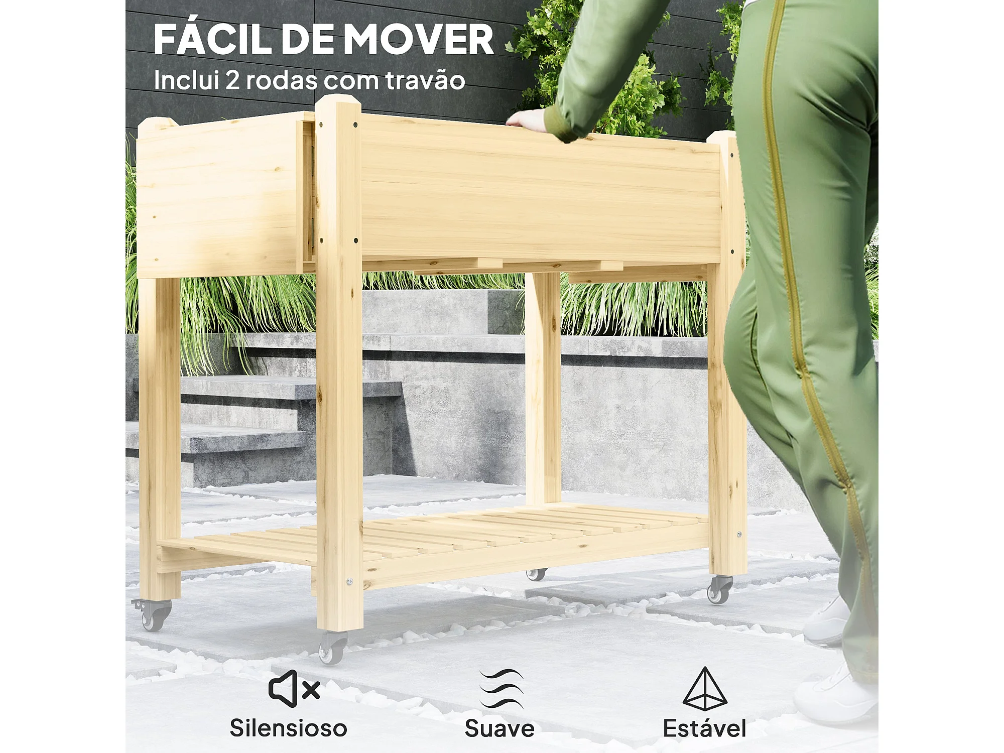 Floreira de Madeira Coimbra com Rodas – Ideal para Cultivo de Flores e Vegetais em Jardins e Varandas