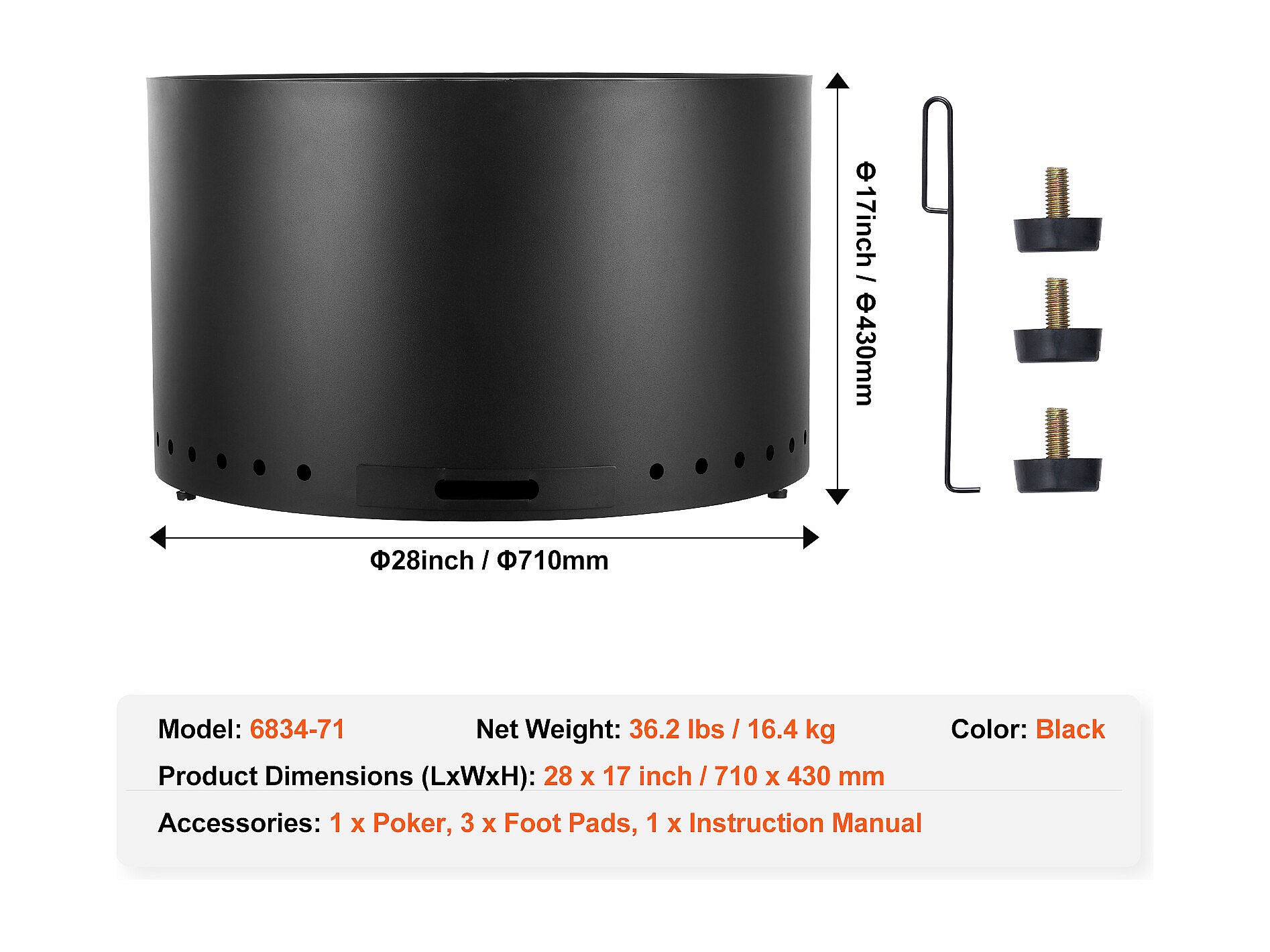 Fogão a Lenha sem Fumo SucceBuy Bonfire, 710 mm de Diâmetro, em Aço Inoxidável