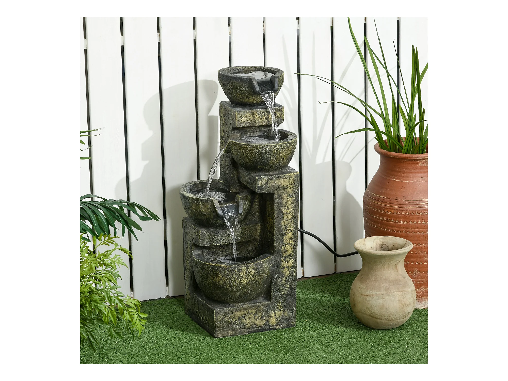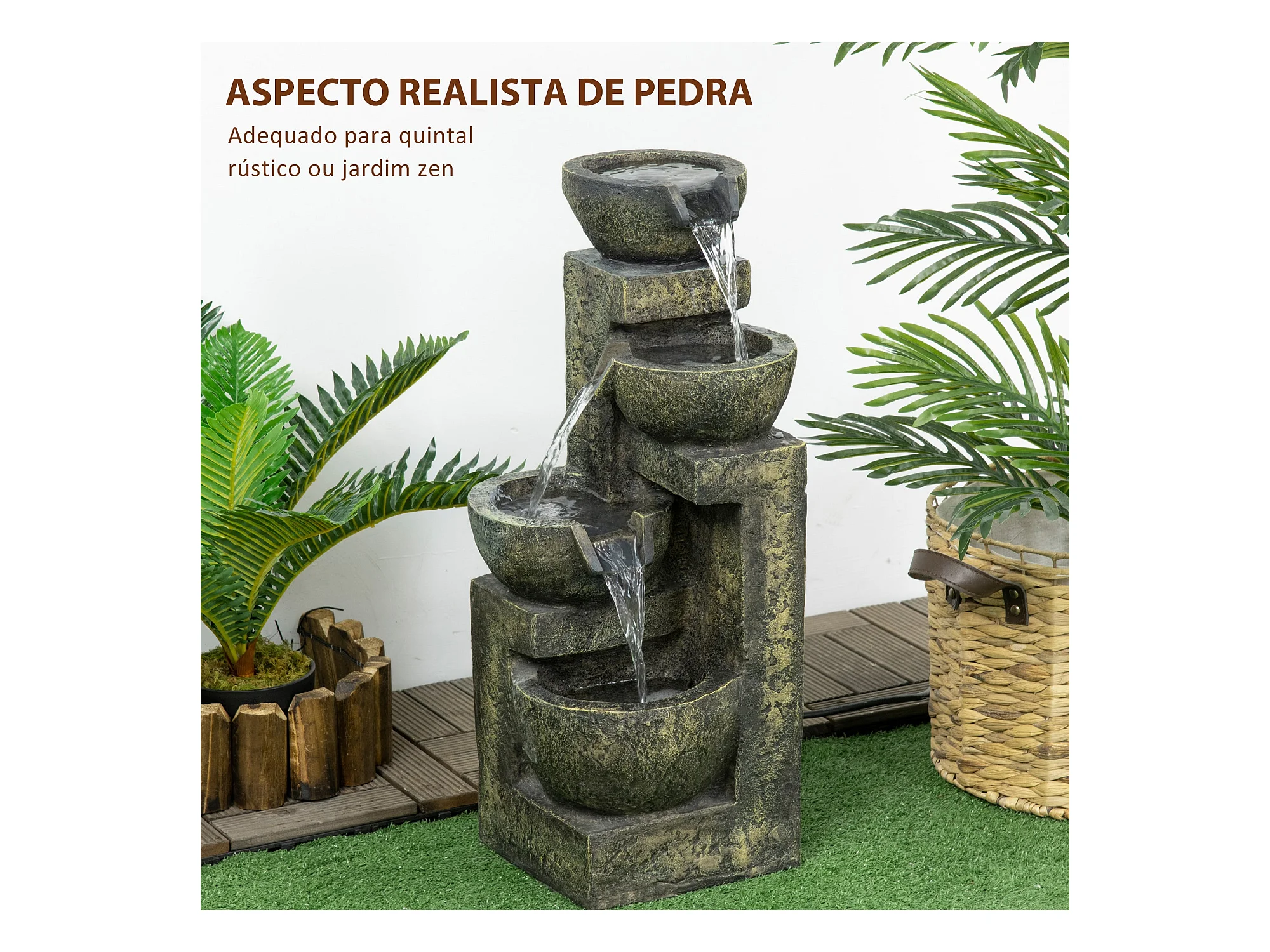 Fonte de Jardim em Cascata Multicolorida 5W com Bomba e Ajuste de Fluxo - 4 Níveis para Decoração Exterior
