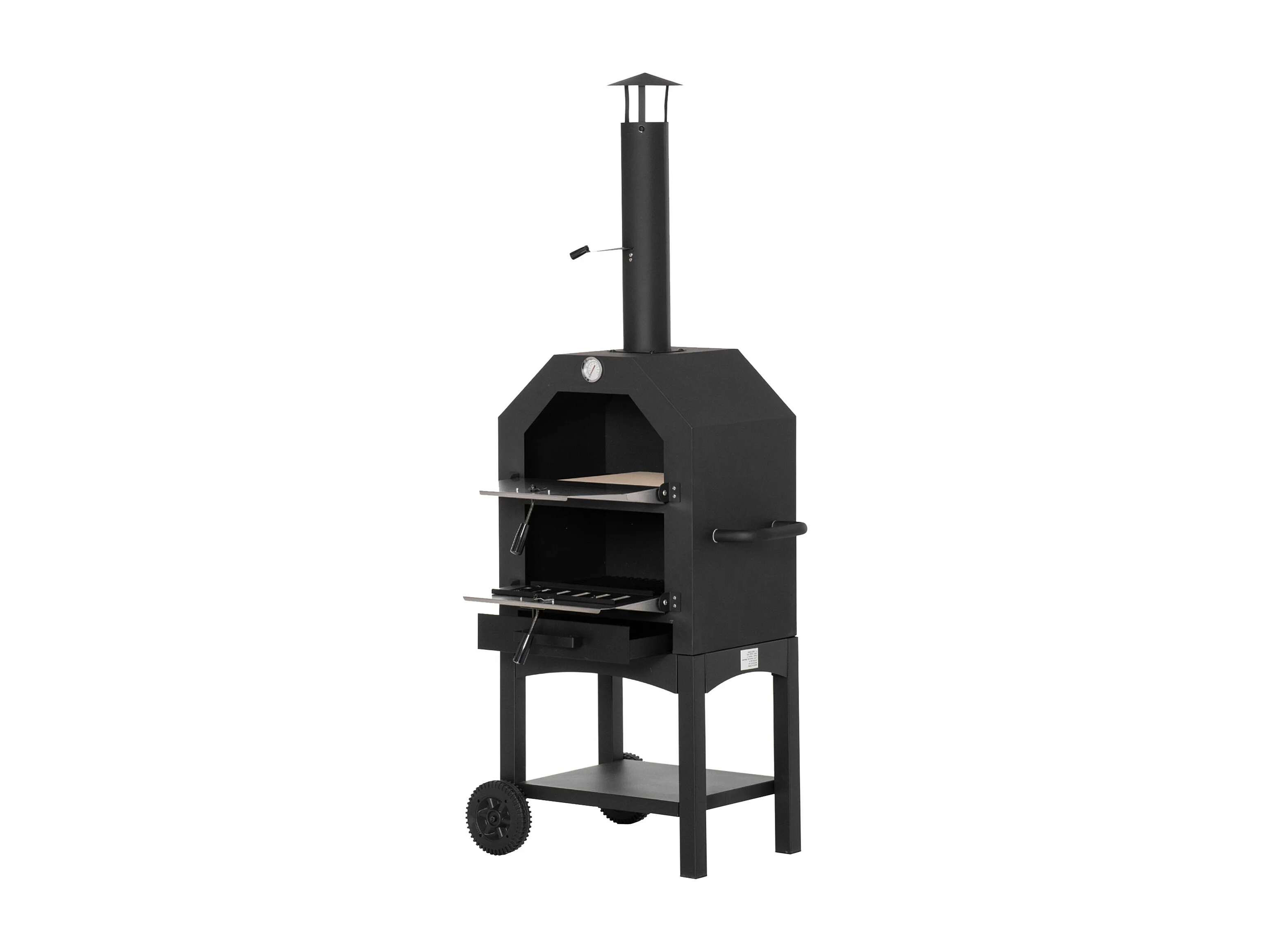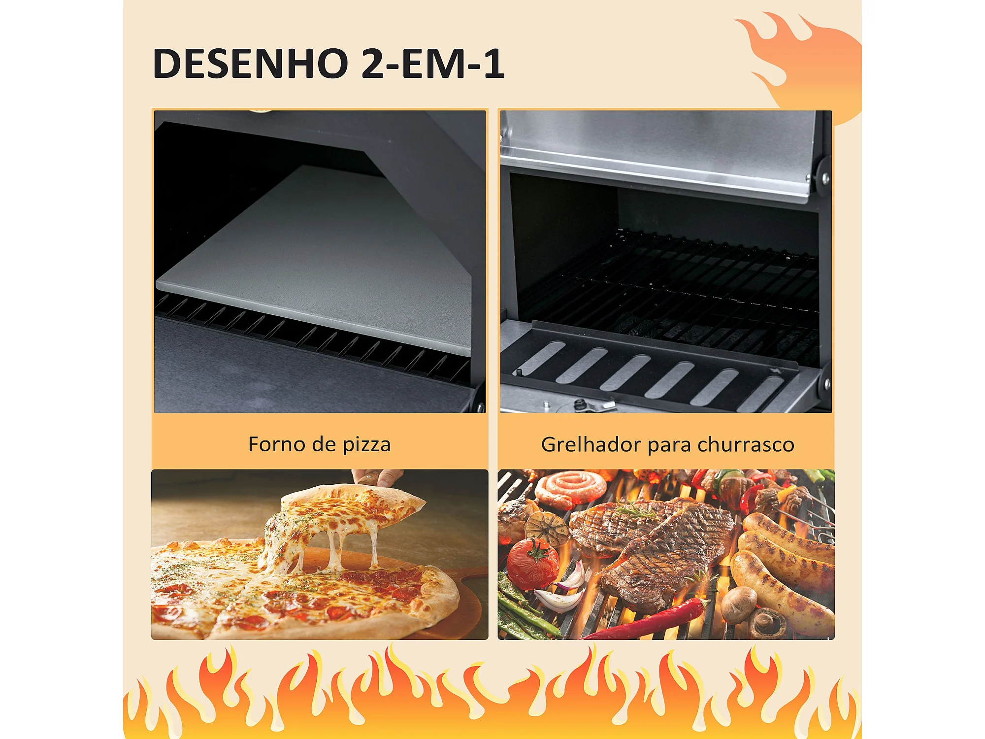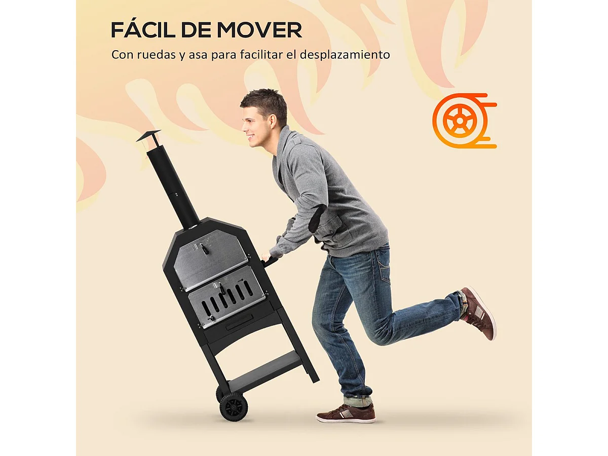 Forno de Pizza a Lenha para Exterior com Rodas e Gaveta Removível - 64x54x160 cm