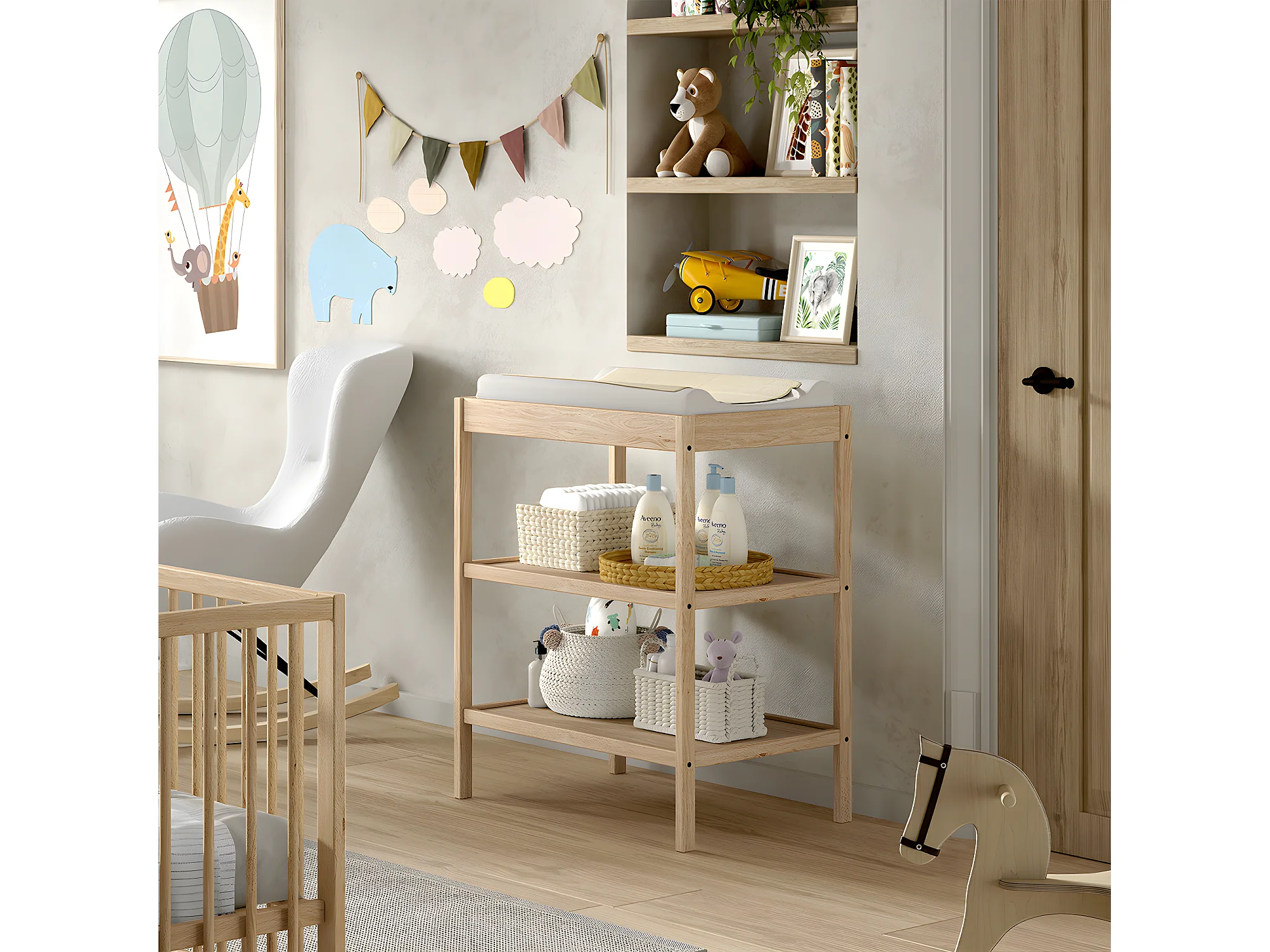 Móvel trocador bebé 2 portas ESSENTIEL de madeira Faia em bruto