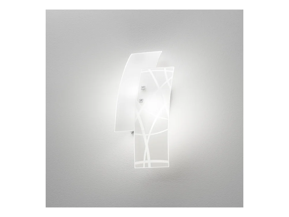 Aplique Nereide 35x14cm em vidro acetinado serigrafado branco 2XE14, candeeiro de parede moderno com base cromada, IP20, max 2x28W