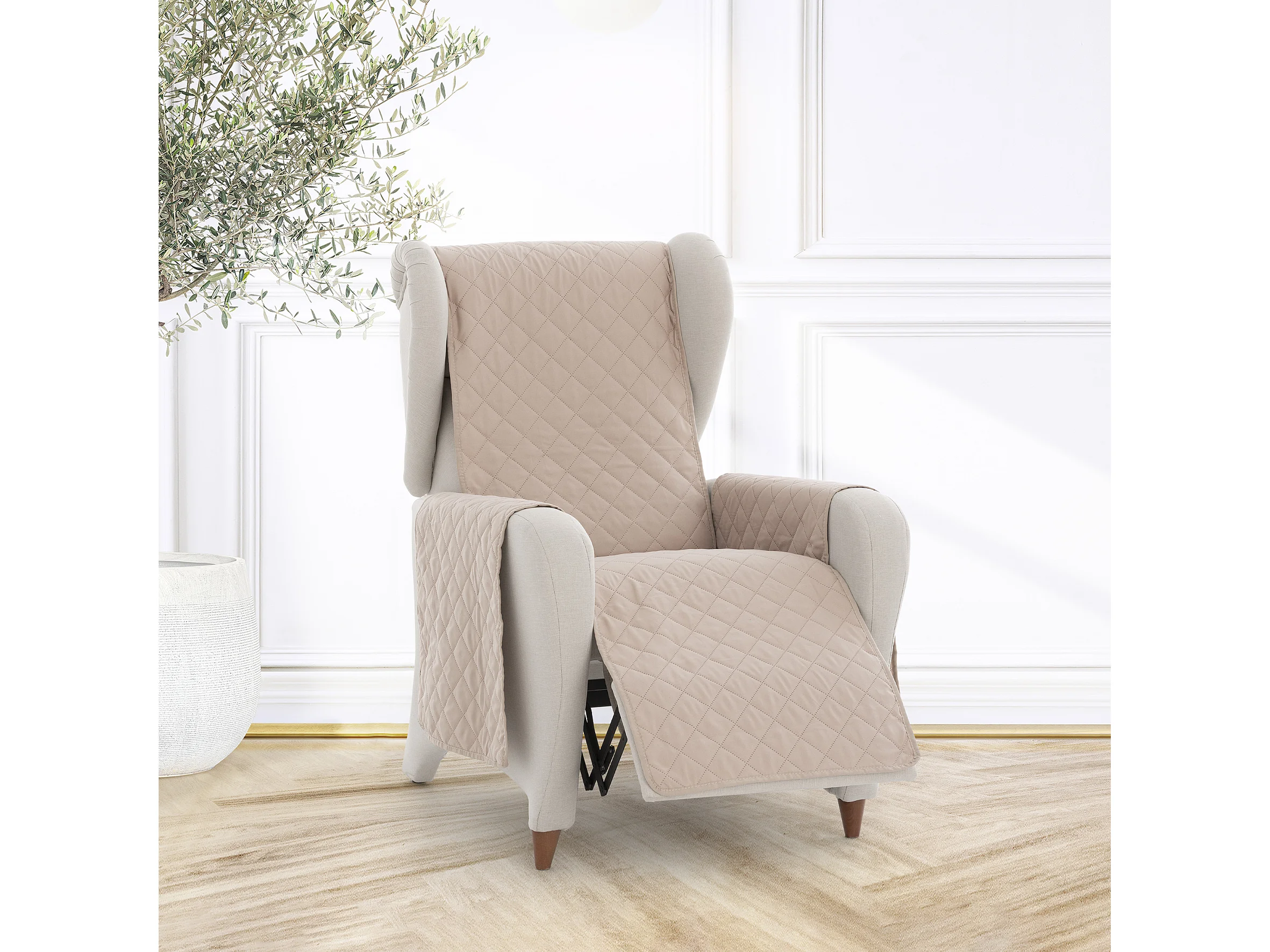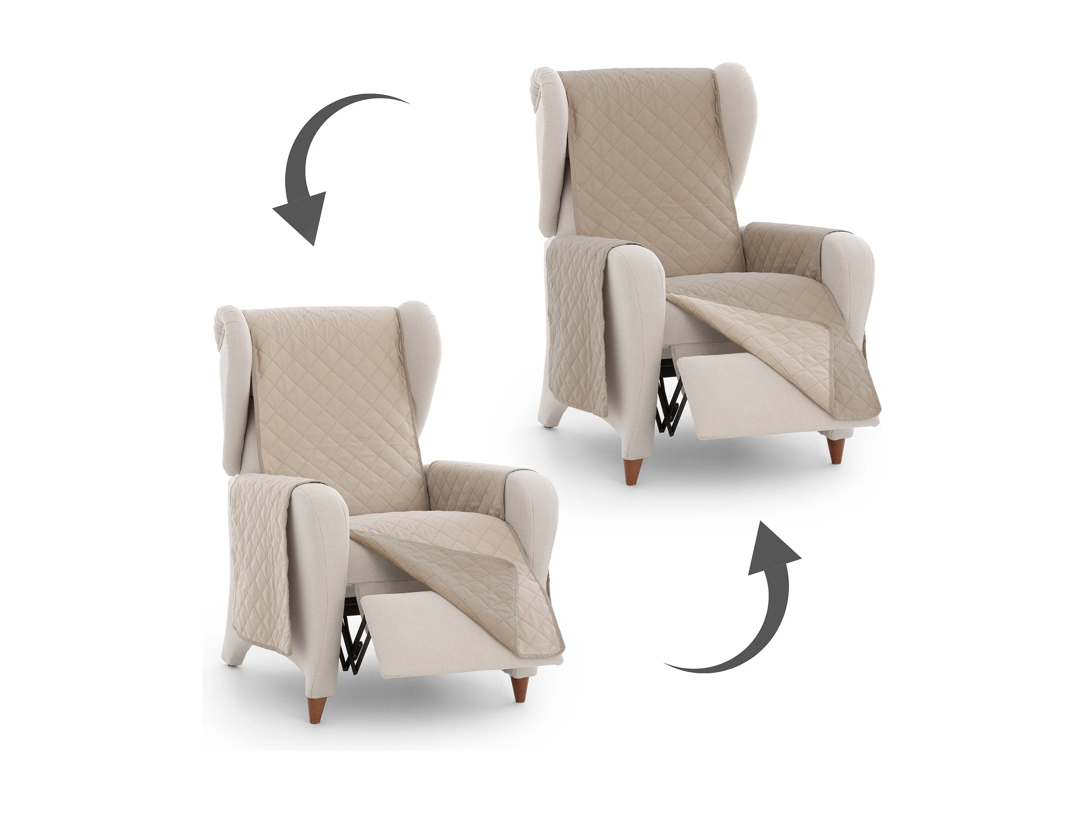 Funda acolchoada reversível Michelle para sofá de 1 lugar cor 01 Bege