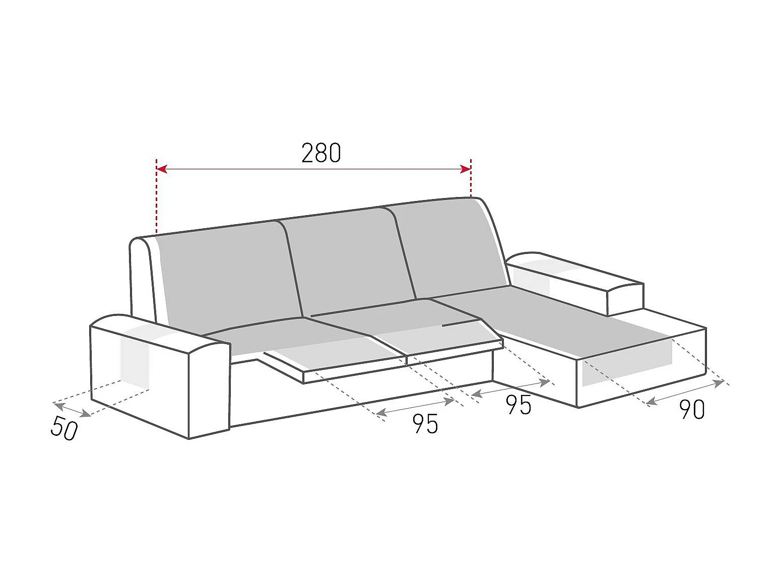 Funda para chaise longue relax com assentos reclináveis Roxana - Cor Vermelho - Tamanho 280 cm