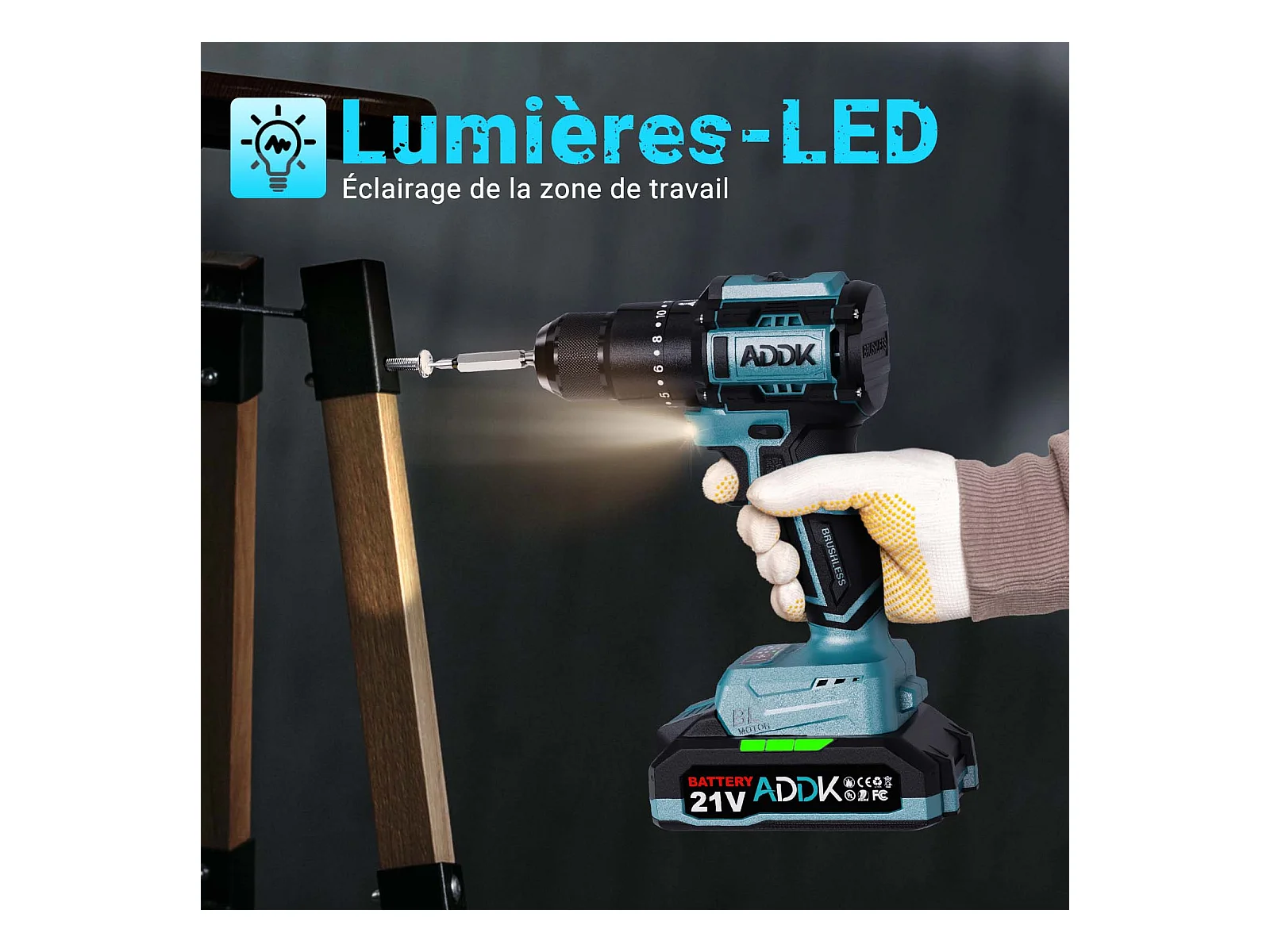Berbequim/Aparafusador sem fios com luz LED - 21 V - Duas baterias de 1,5 Ah - 37 acessórios - Motor escovado - Azul