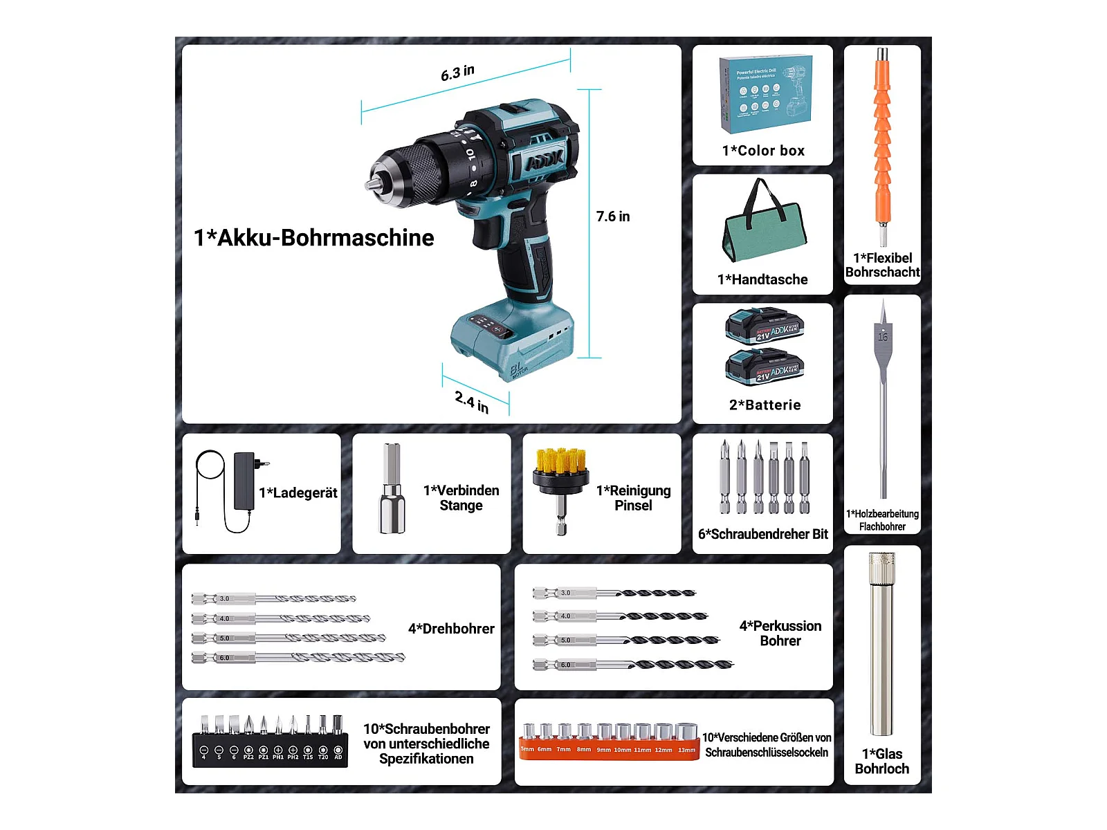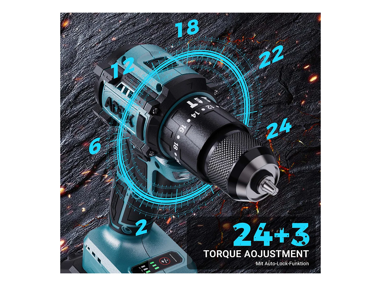 Furadeira e parafusadeira 350W 21V 24+3 modos - 3 velocidades ajustáveis - Furadeira portátil - Azul (2 baterias)