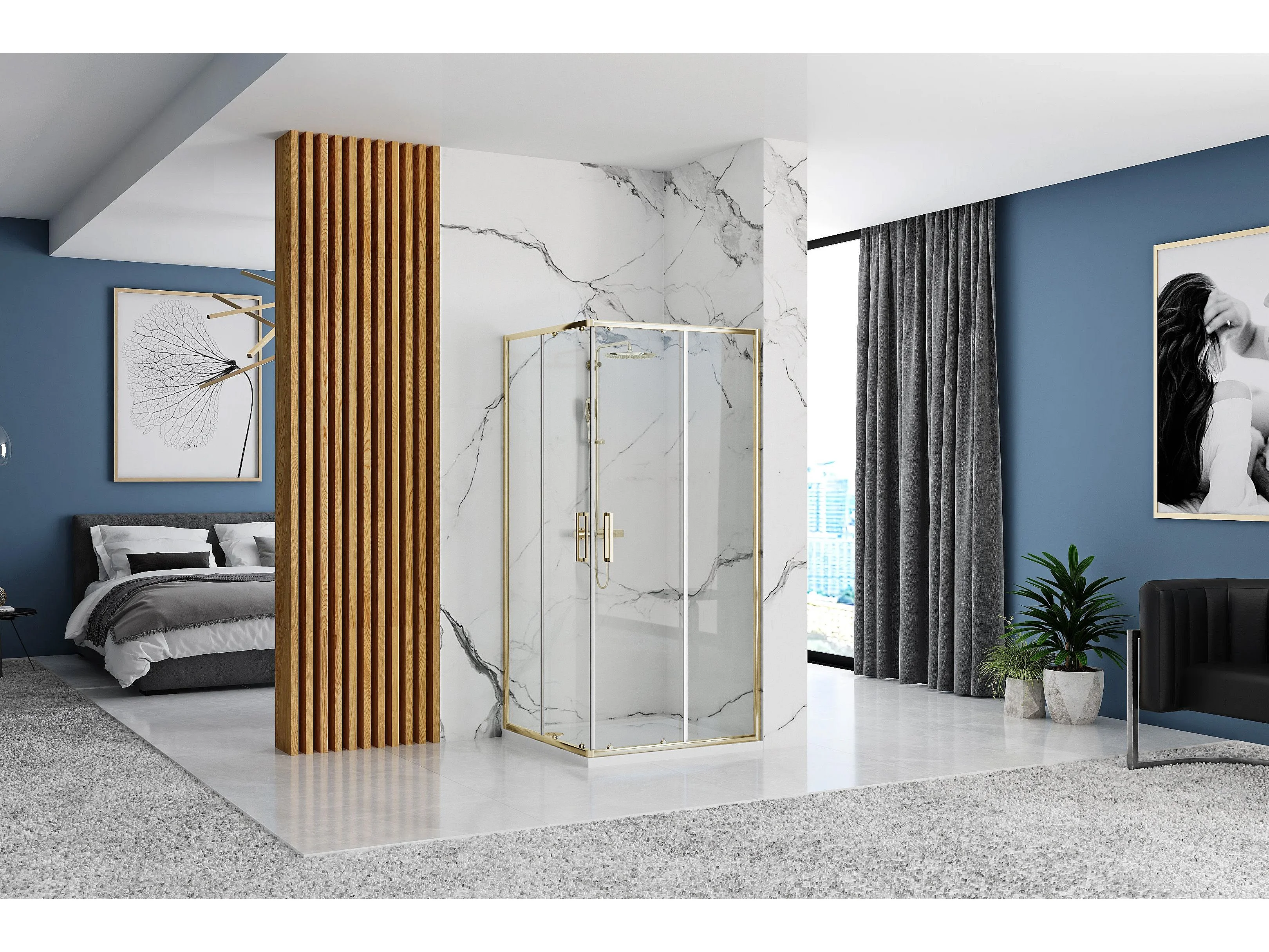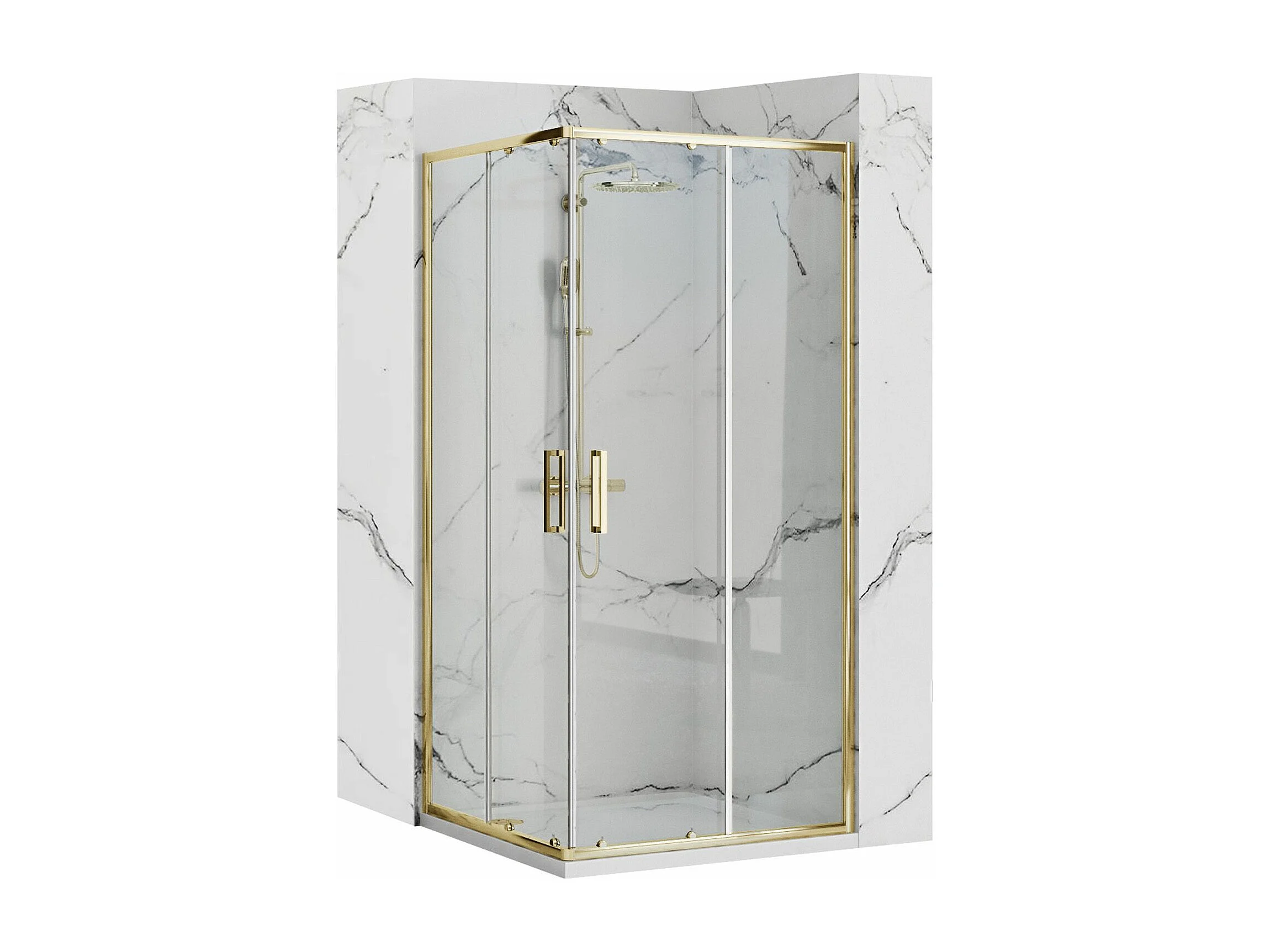 Gabinete De Chuveiro Rea Punto 90X90 Gold + Bandeja De Duche Savoy White