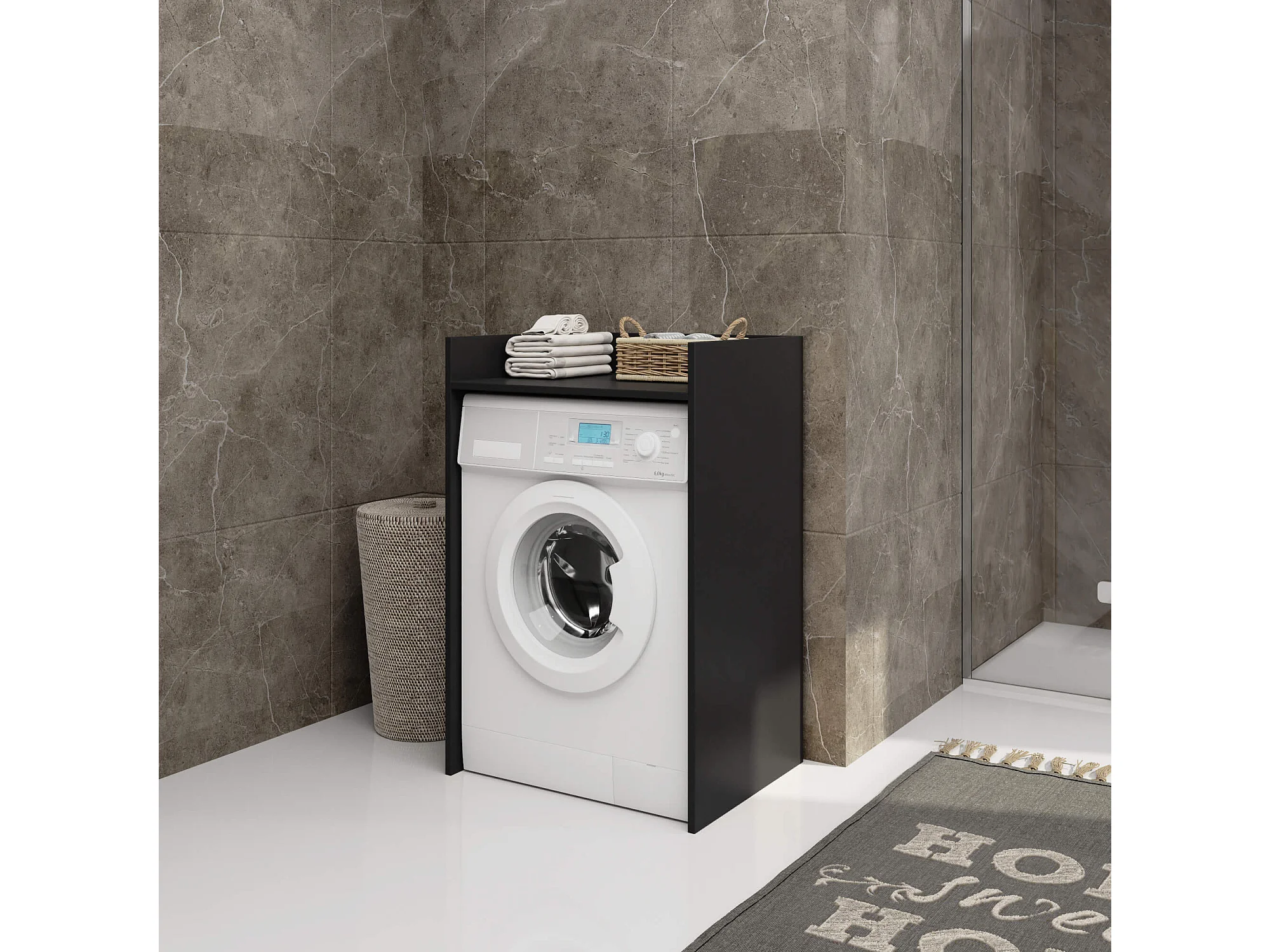 Prateleira preta para máquina de lavar 67x25x163 cm madeira projetada