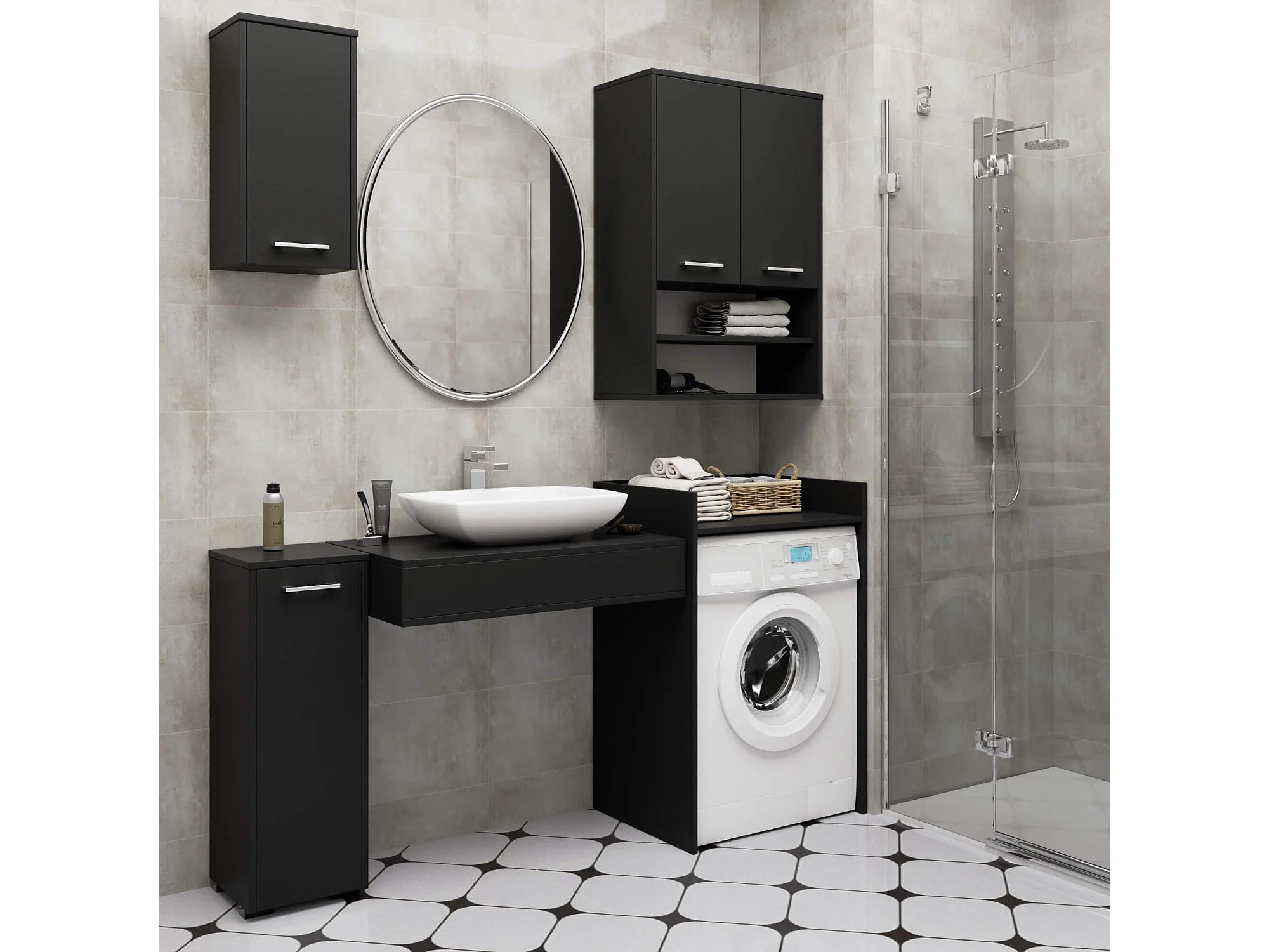 Armário de Banheiro Sobre a Máquina de Lavar e Secar Torre Eletrodomésticos Preta