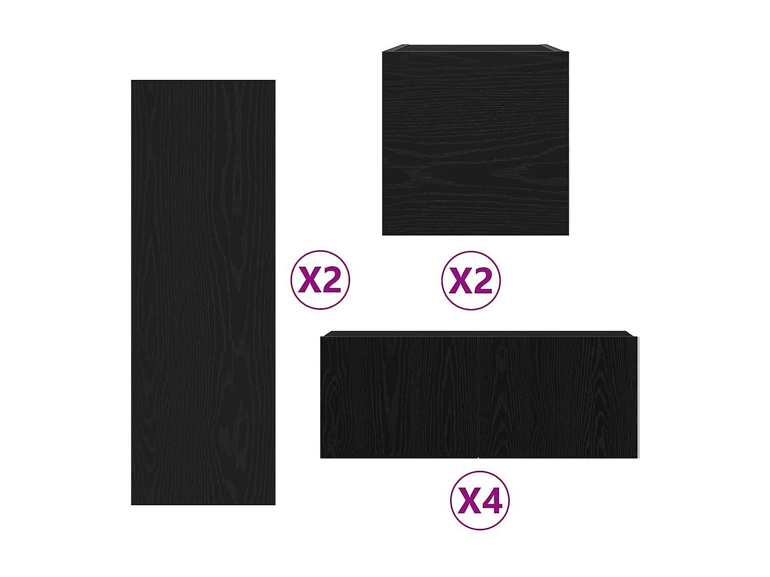 Gabinete para TV 8 peças Preto 80 x 30 x 30 cm Madeira processada