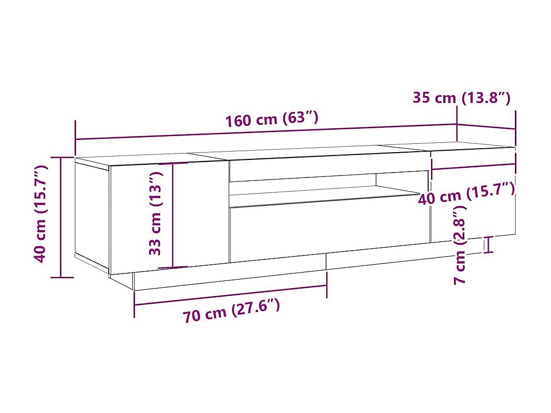 Armário de TV Carvalho preto 100 x 35 x 40 cm