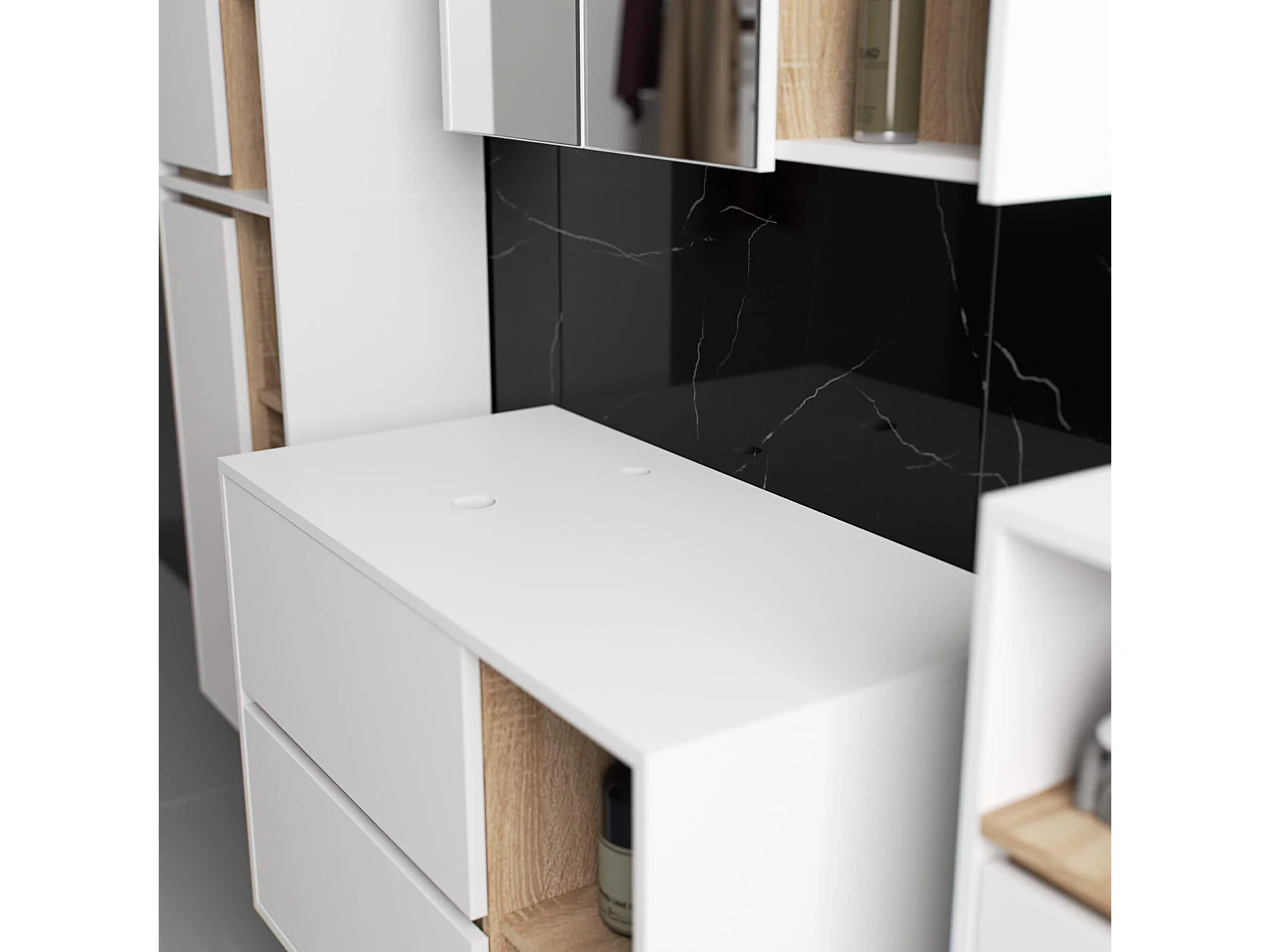 Gabinete Suspenso de Banheiro VAMI 90cm 2 Gavetas 2 Prateleiras Branco/Carvalho Sonoma