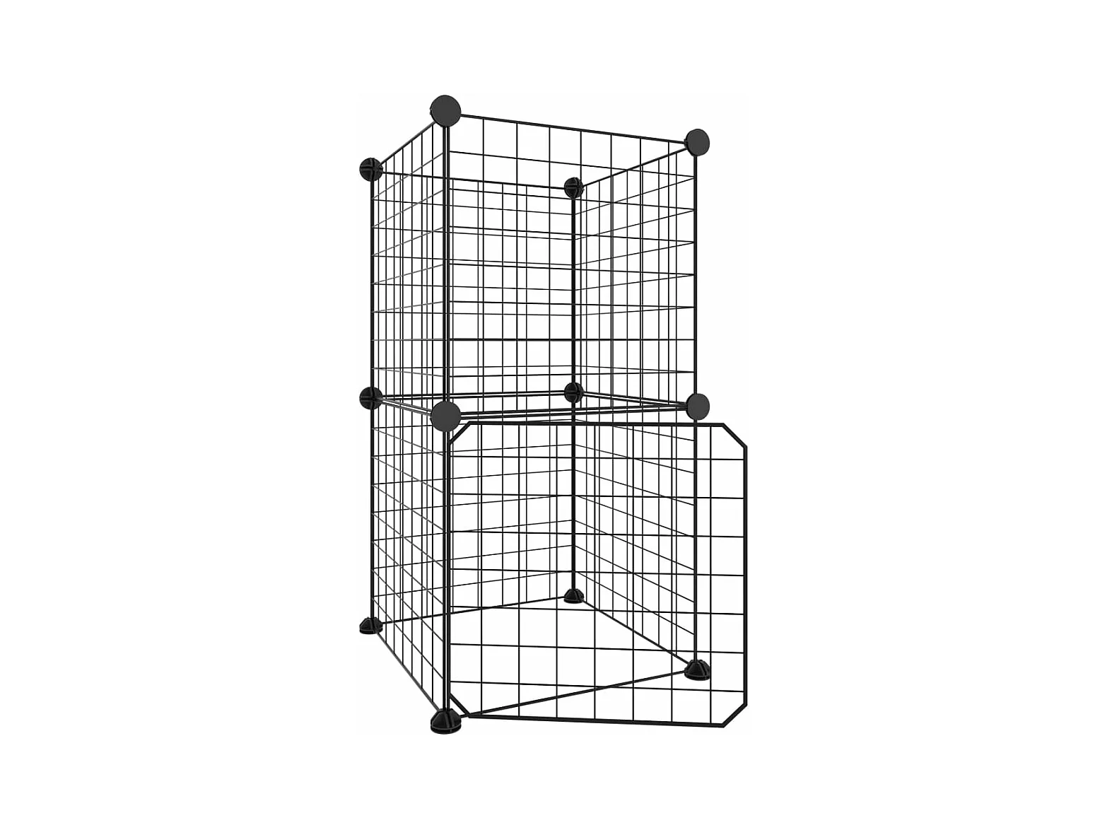 Gaiola p/ animais de 8 painéis c/ porta 35x35 cm aço preto PT682290