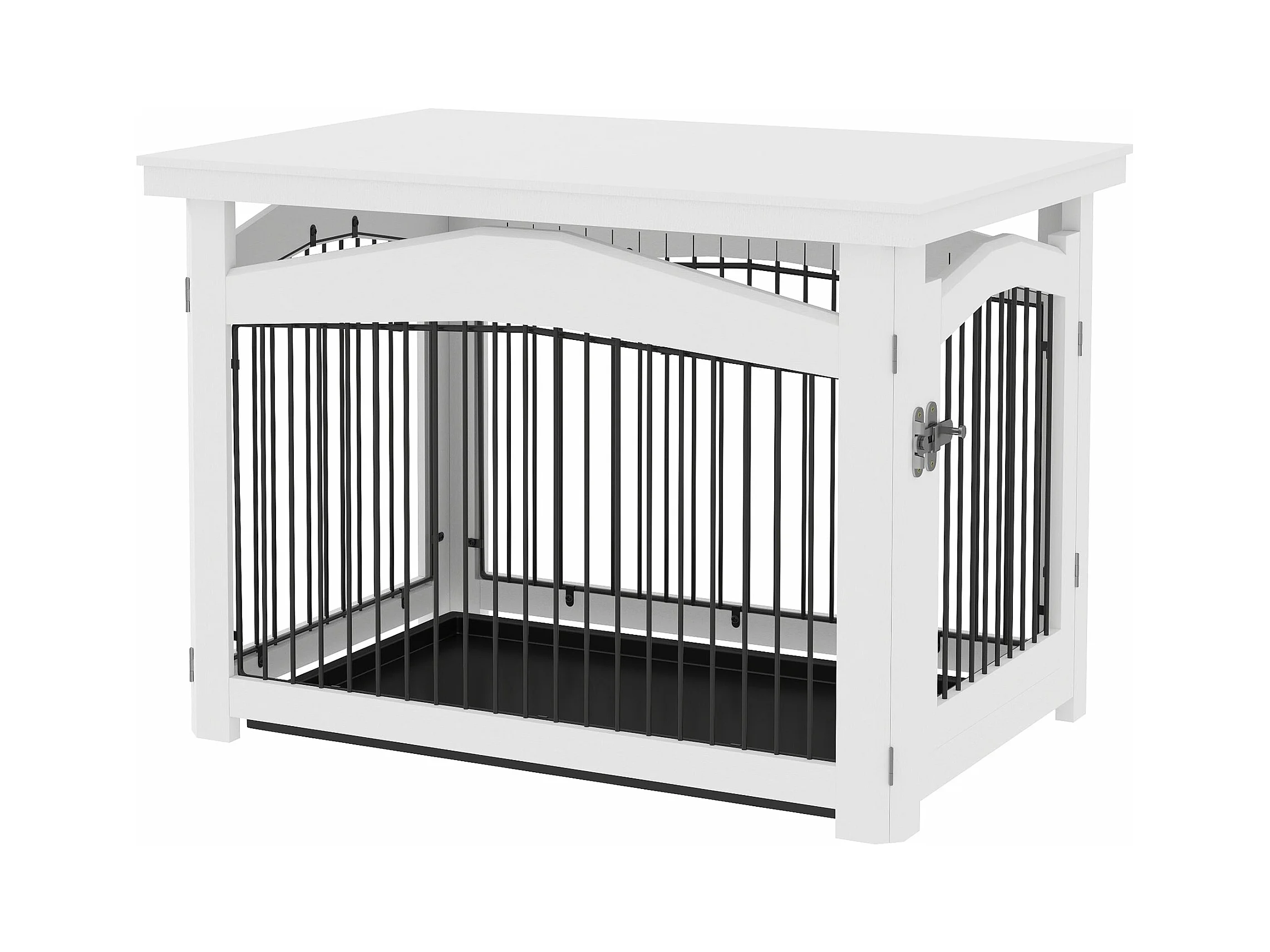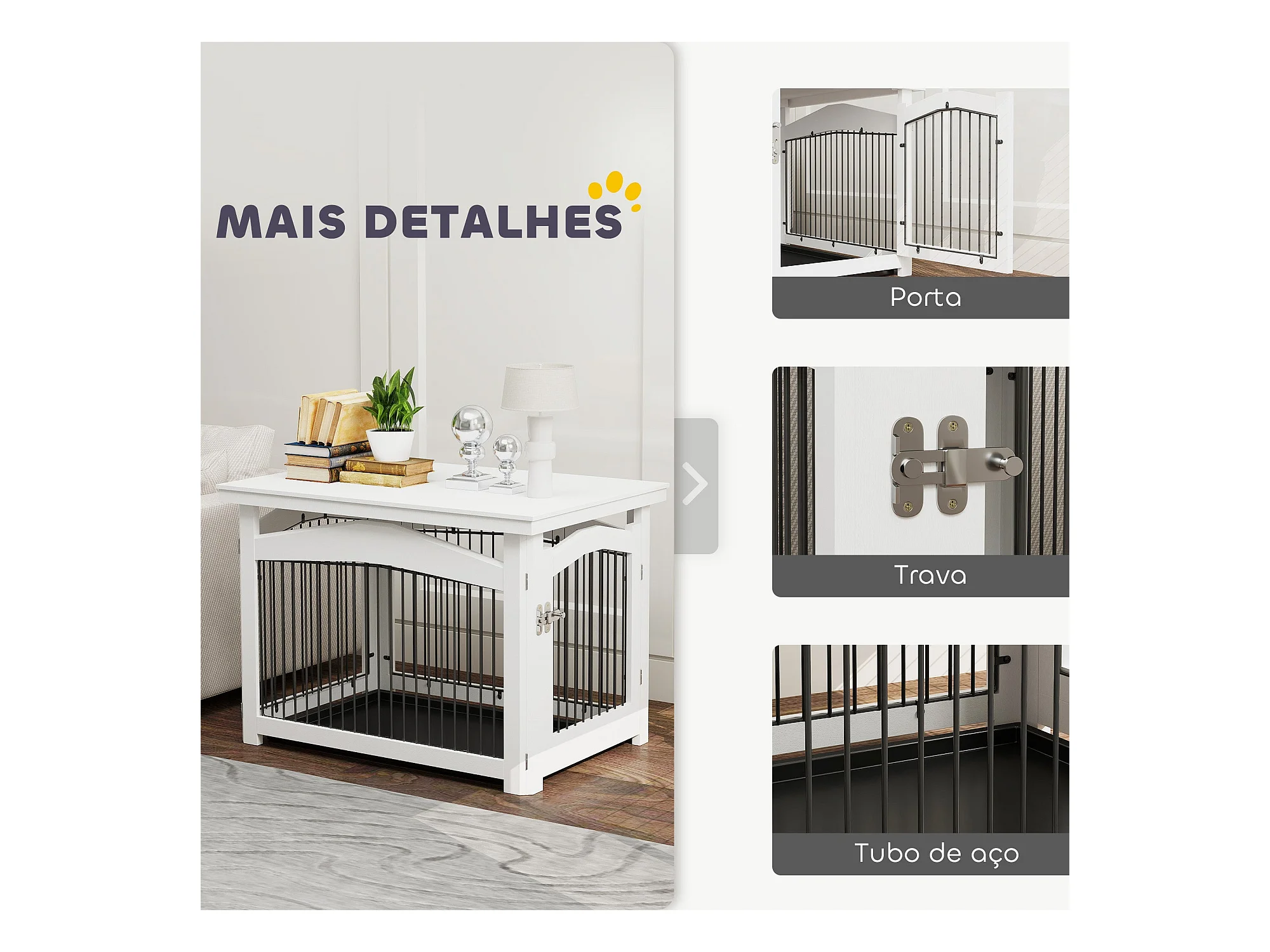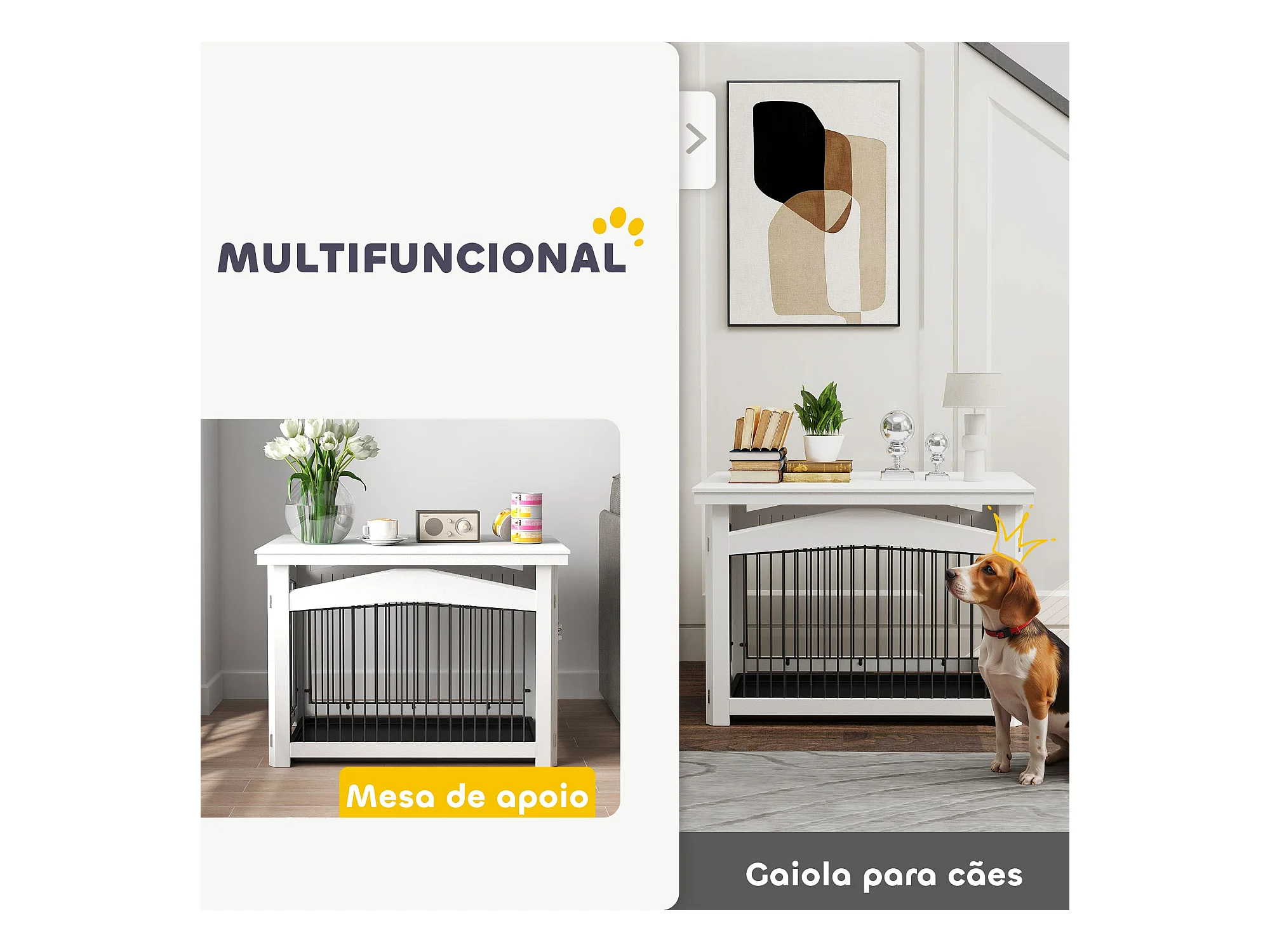 Gaiola para Cães Médios 3 em 1 PawHut: Mesa Auxiliar e Parque Desmontável em Branco
