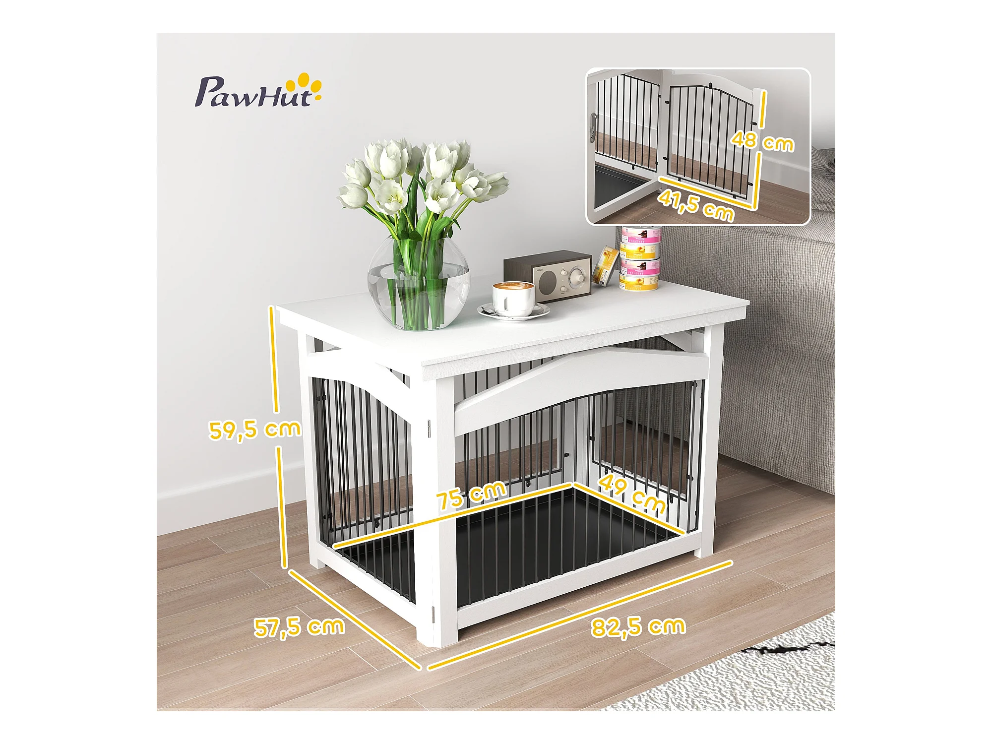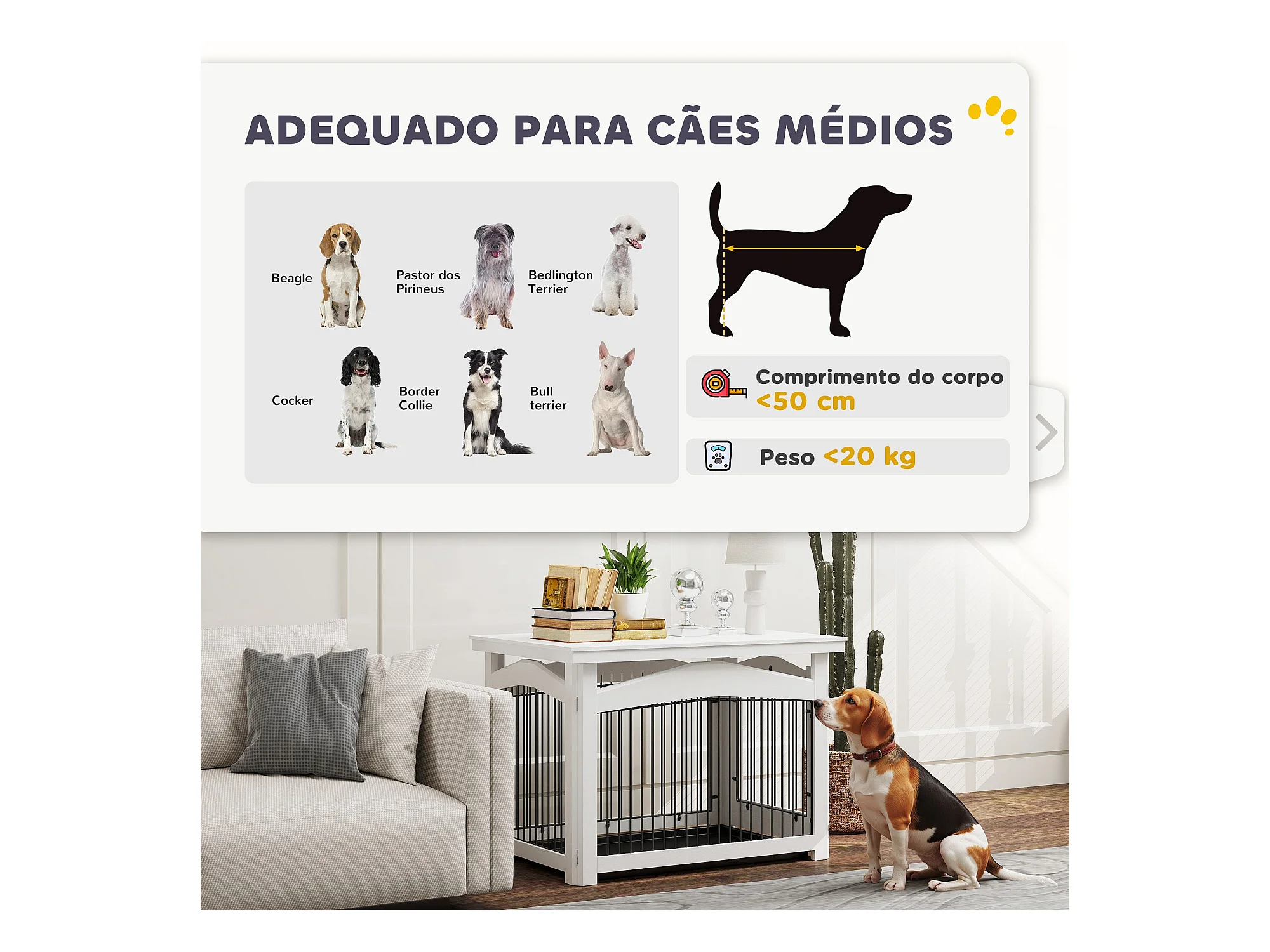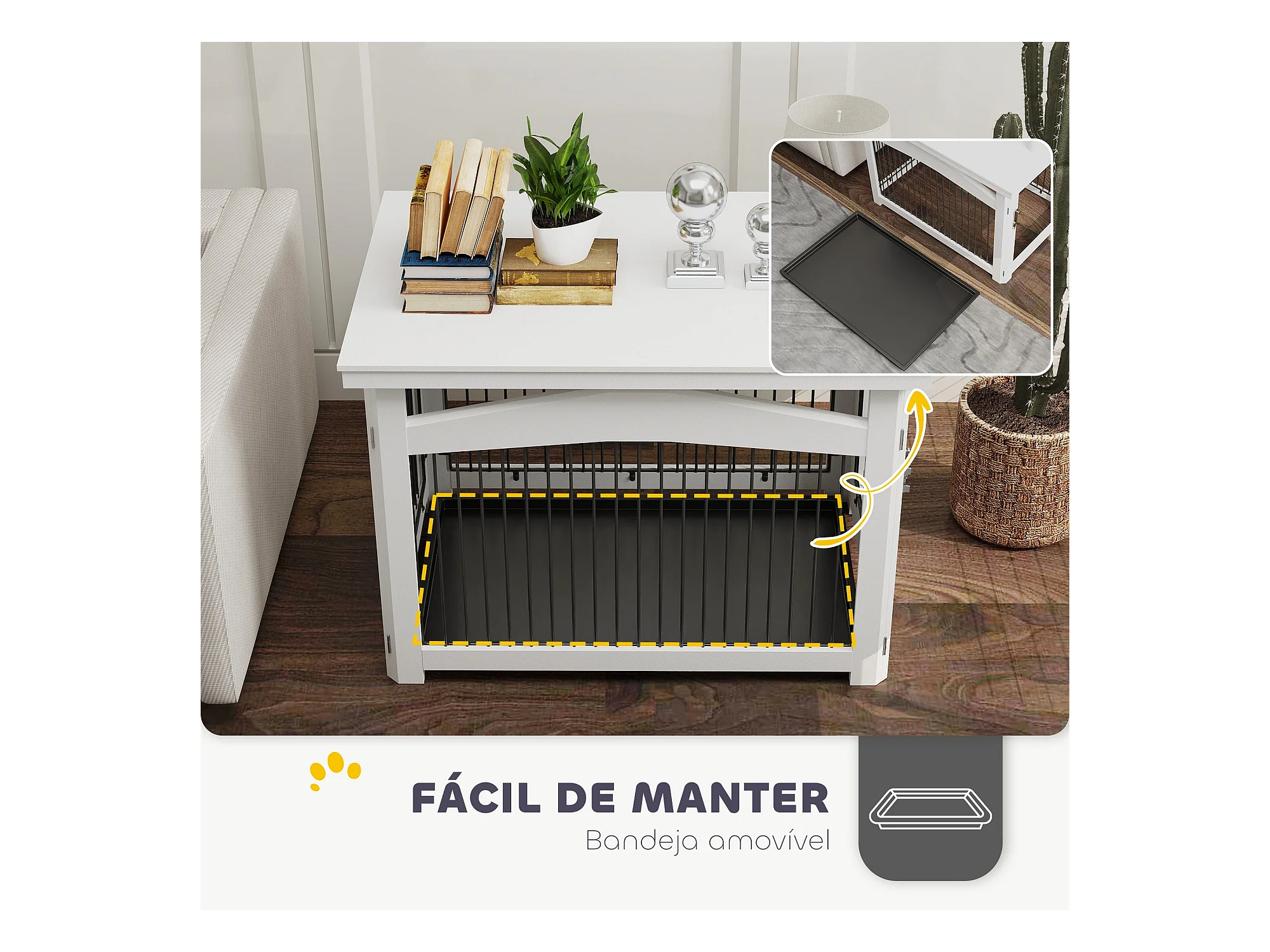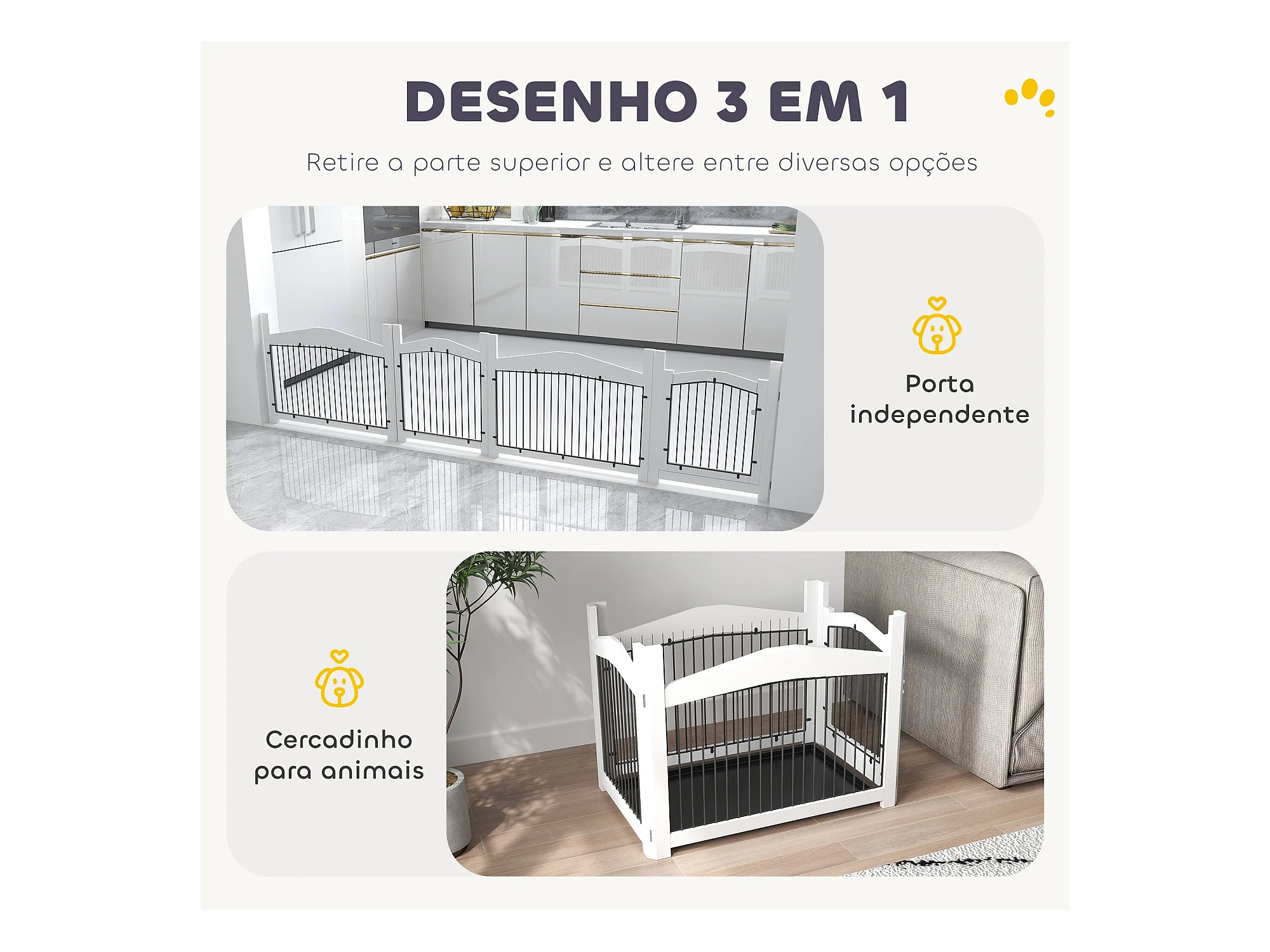 Gaiola para Cães Médios 3 em 1 PawHut: Mesa Auxiliar e Parque Desmontável em Branco
