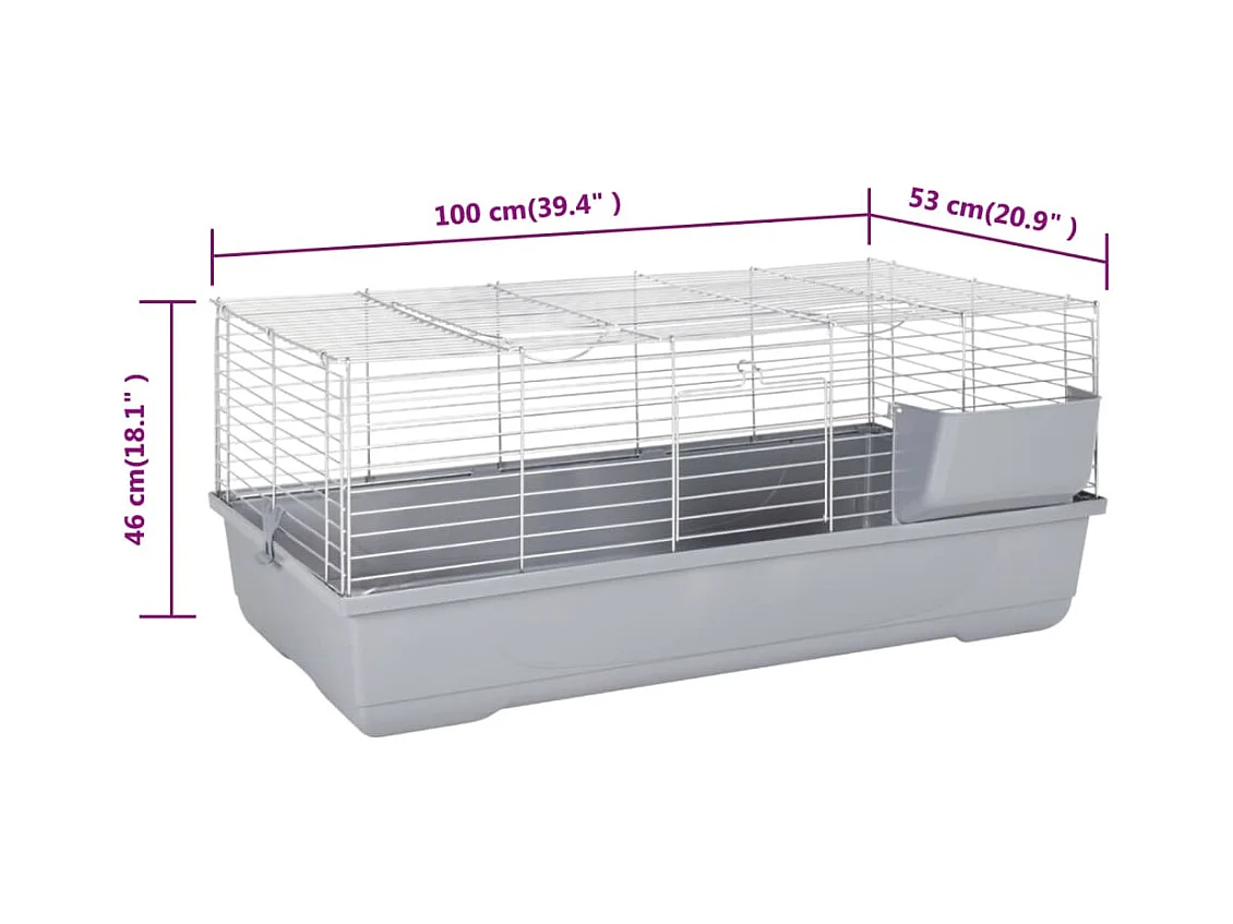 Gaiola para pequenos animais cinza 100x53x46 cm PP e metal
