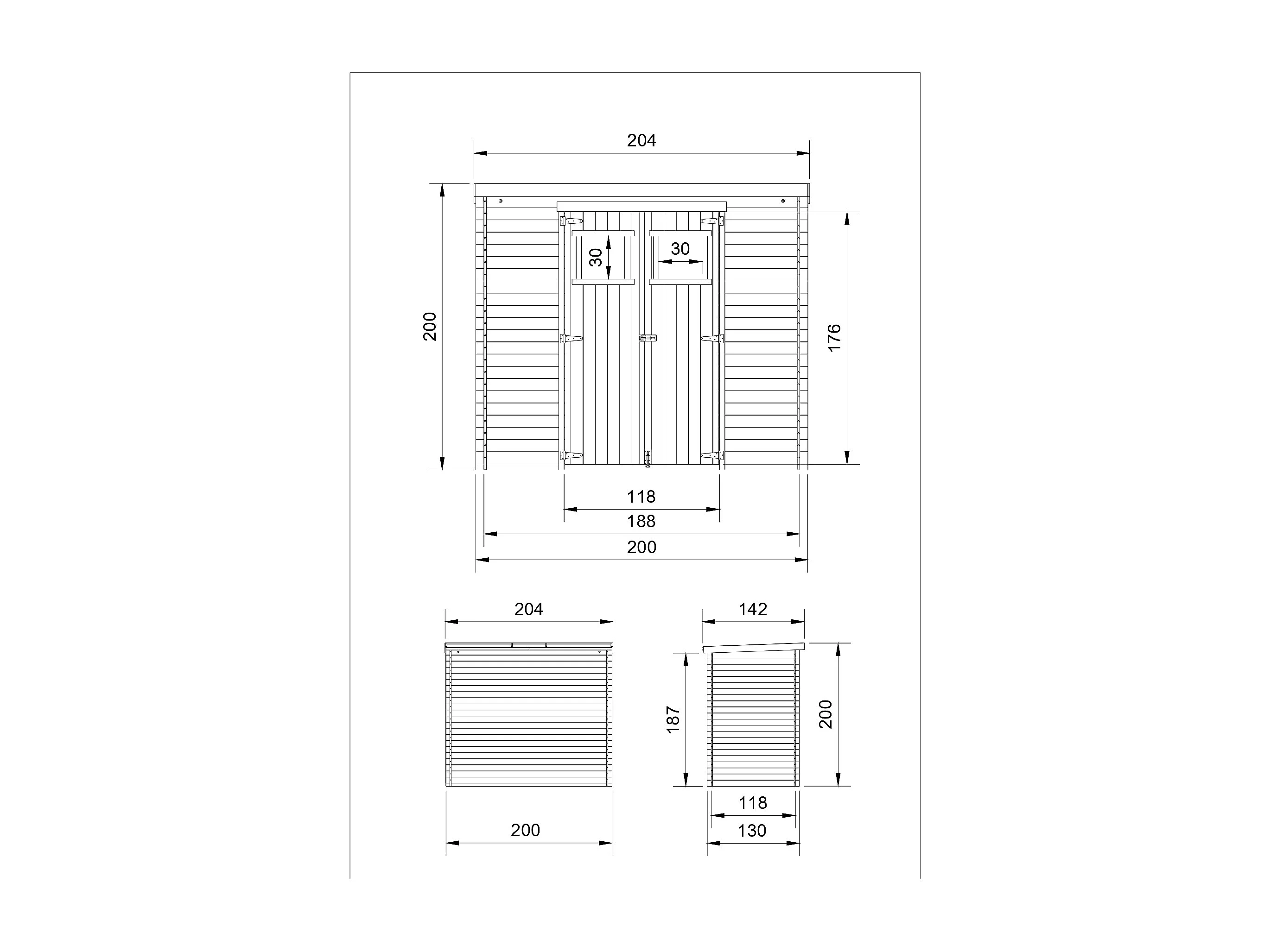 Galpão de madeira - 2.22 m² / H200x204x142 cm - M311
