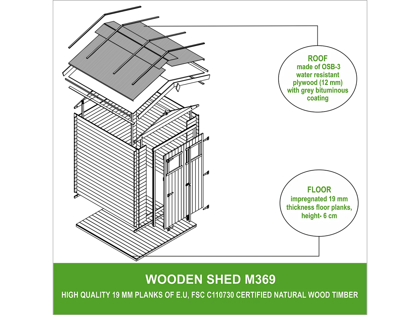 Galpão de madeira 4,33 m² - H218 x 236 x 226 cm - TIMBELA M369+M369G