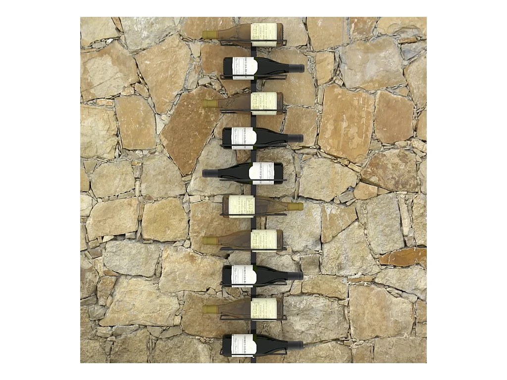 Garrafeira de parede para 9 garrafas ferro preto PT661203