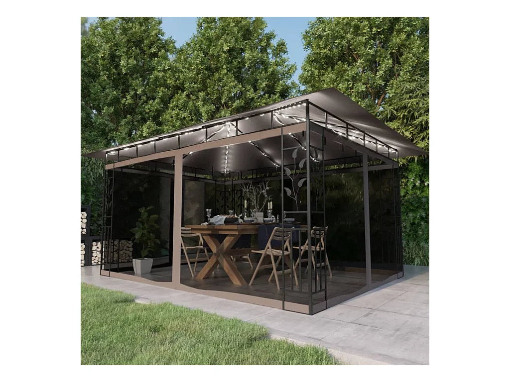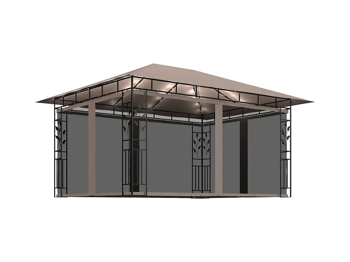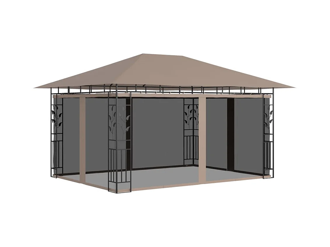 Gazebo c/ rede mosquiteira 4x3x2,73m 180 g/m² cinza-acastanhado