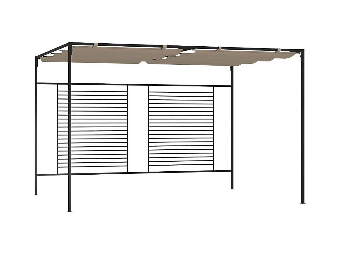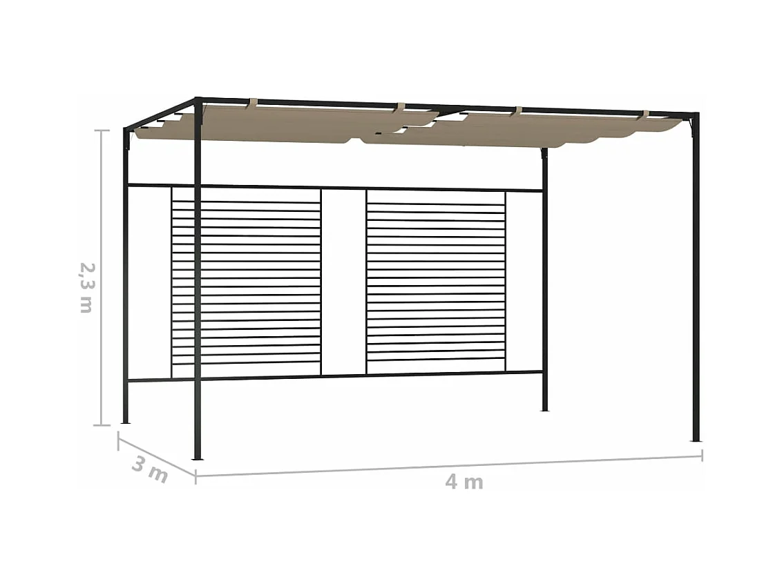 Gazebo c/ telhado retrátil 3x4x2,3 m 180 g/m² cinza-acastanhado