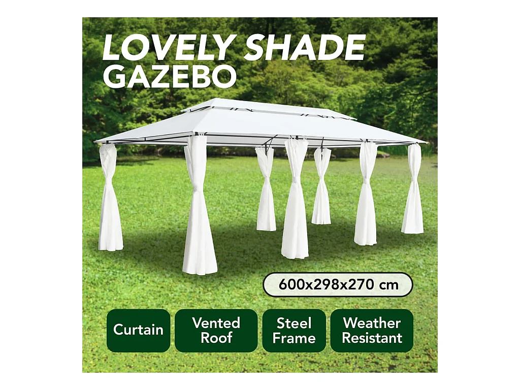 Gazebo com cortinas 600x298x270 cm 180g/m² branco