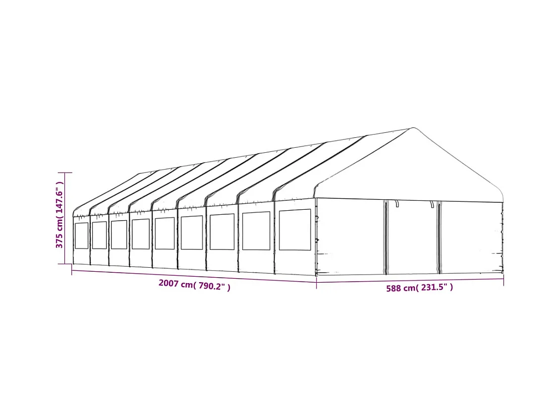Gazebo com telhado 20,07x5,88x3,75 m polietileno branco