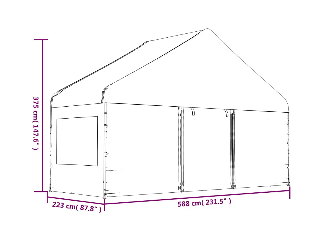 Gazebo com telhado 5,88x2,23x3,75 m polietileno branco