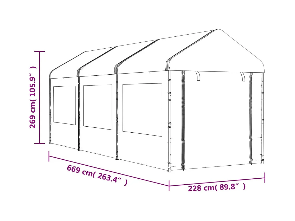 Gazebo com telhado 6,69x2,28x2,69 m polietileno branco