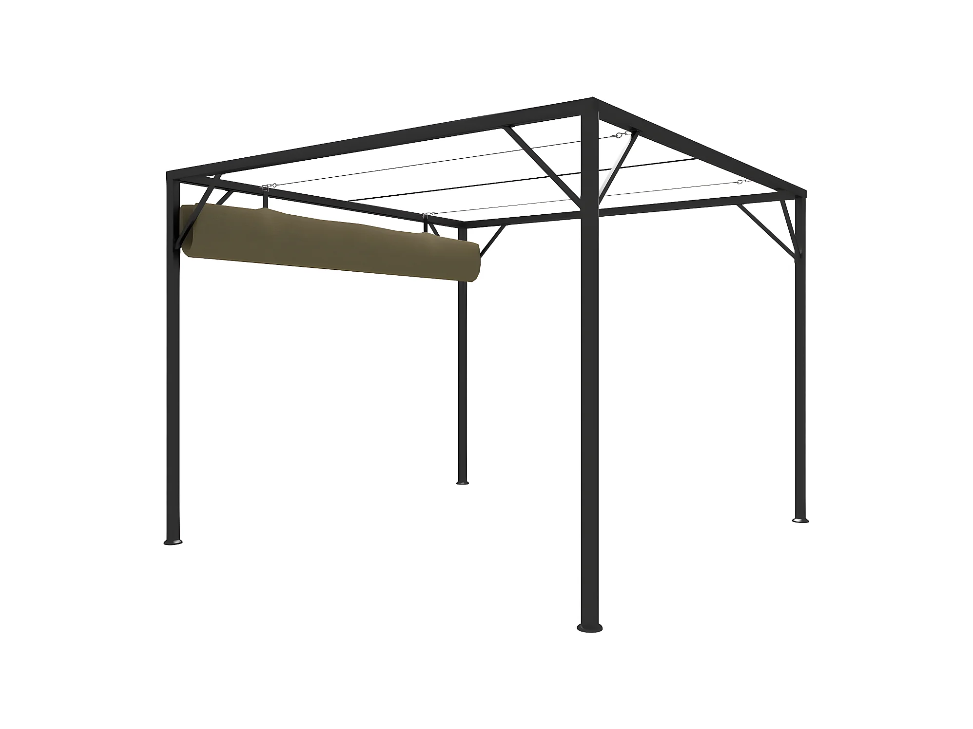 Pérgola com toldo retrátil 3x3 m 180 g/m² aço cinza-acastanhado PT722903