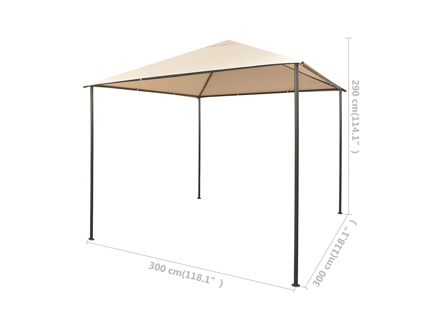 Gazebo 3x3x2,6 m com capas postes 160 g/m² cor creme
