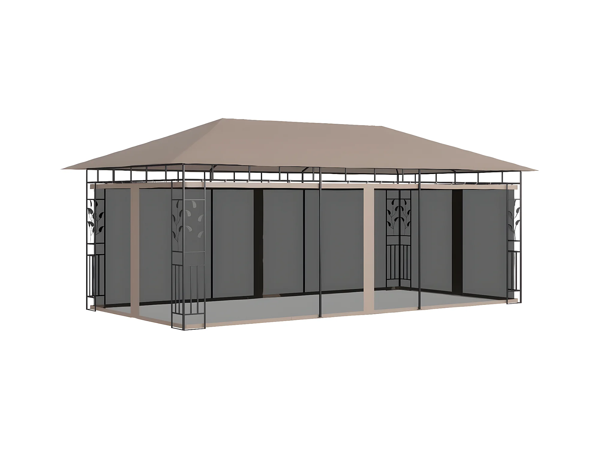Gazebo - Tenda de recepção c/ rede mosquiteira 6x3x2,73m 180 g/m² cinza-acastanhado PT431732