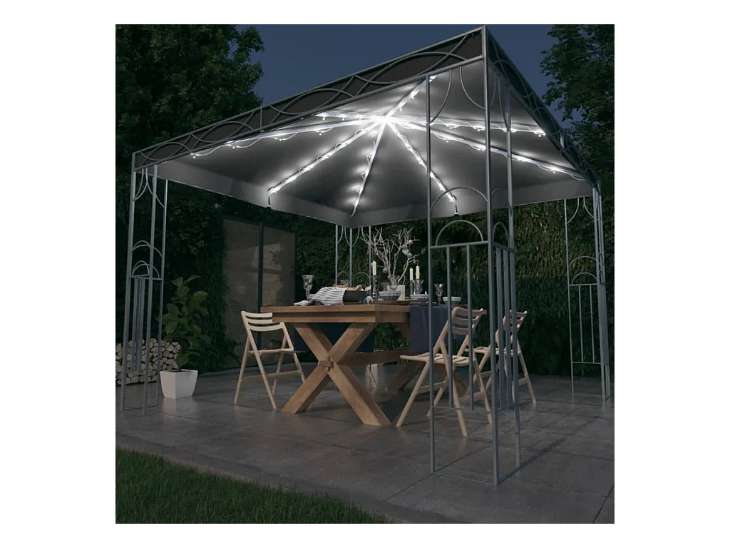 Gazebo - Tenda de recepção com cordões de luzes LED 300x300 cm antracite PT175405