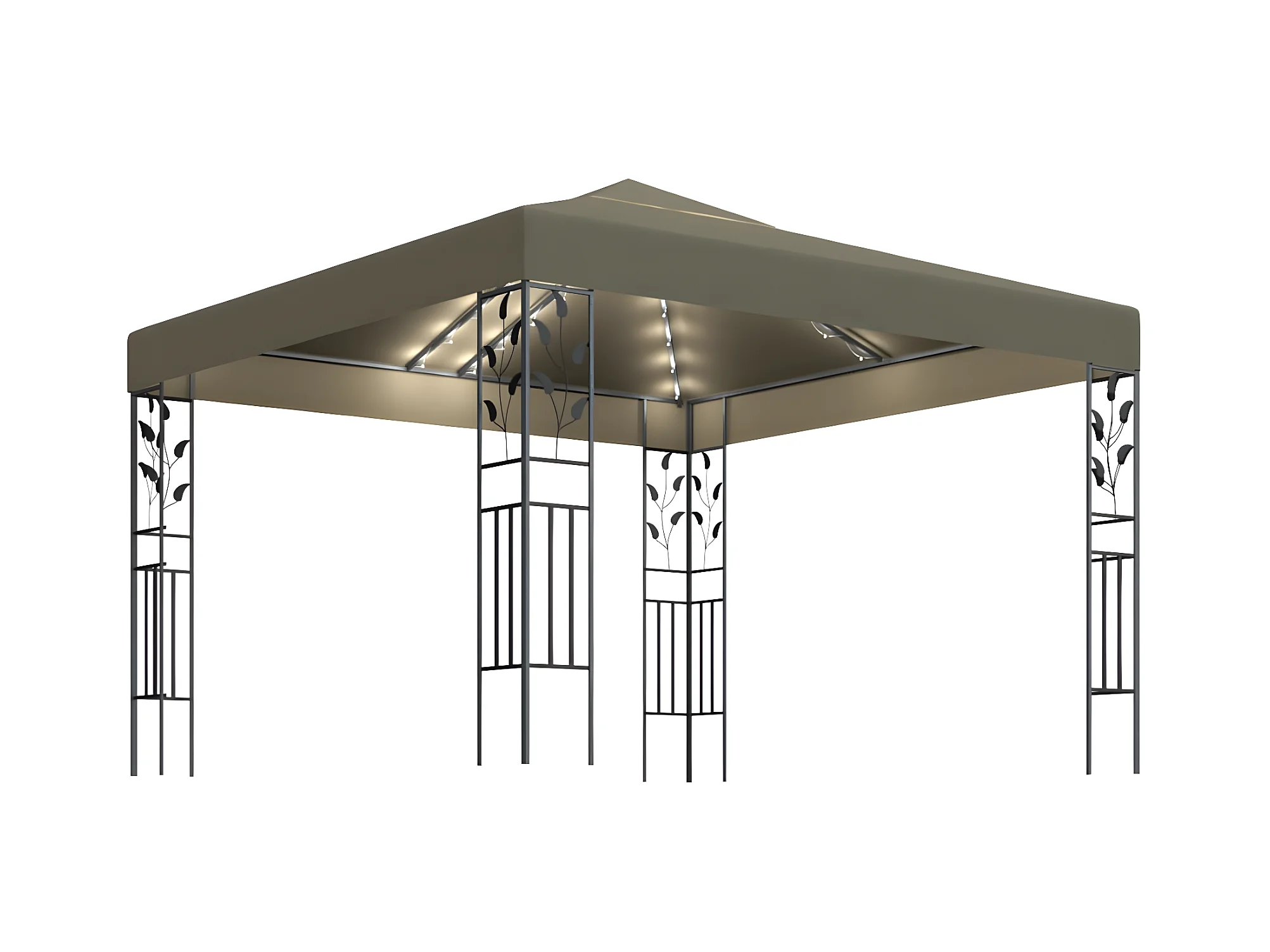 Gazebo - Tenda de recepção com cordões de luzes LED 3x3 m cinza-acastanhado PT239792