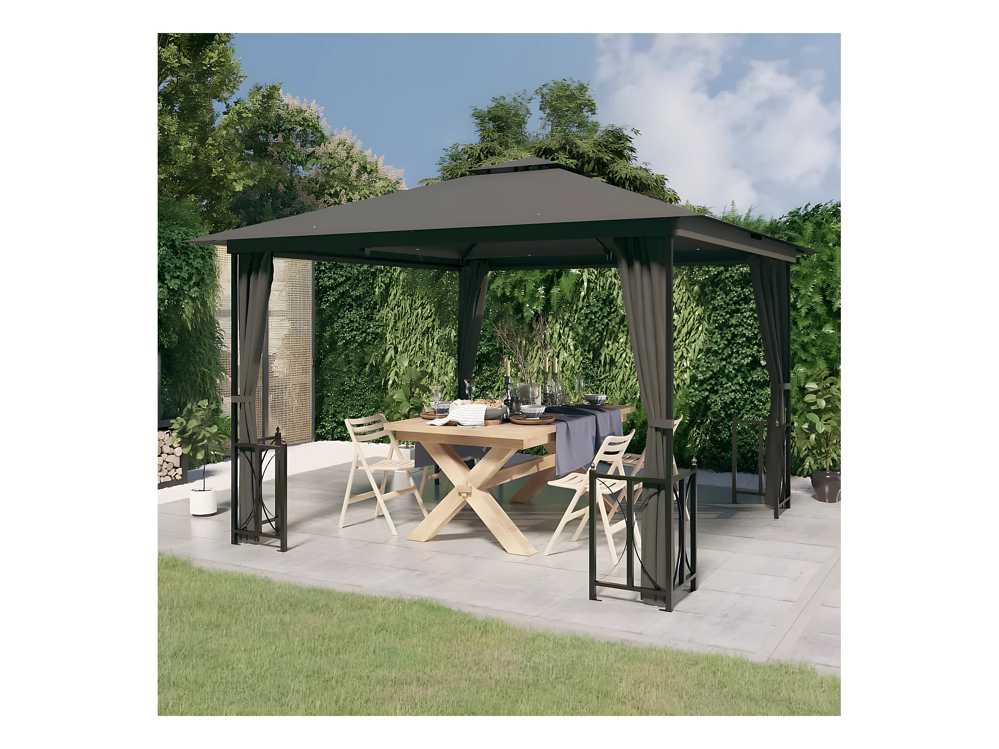 Gazebo - Tenda de recepção com paredes laterais e telhado duplo 3x3 m cor antracite PT585537