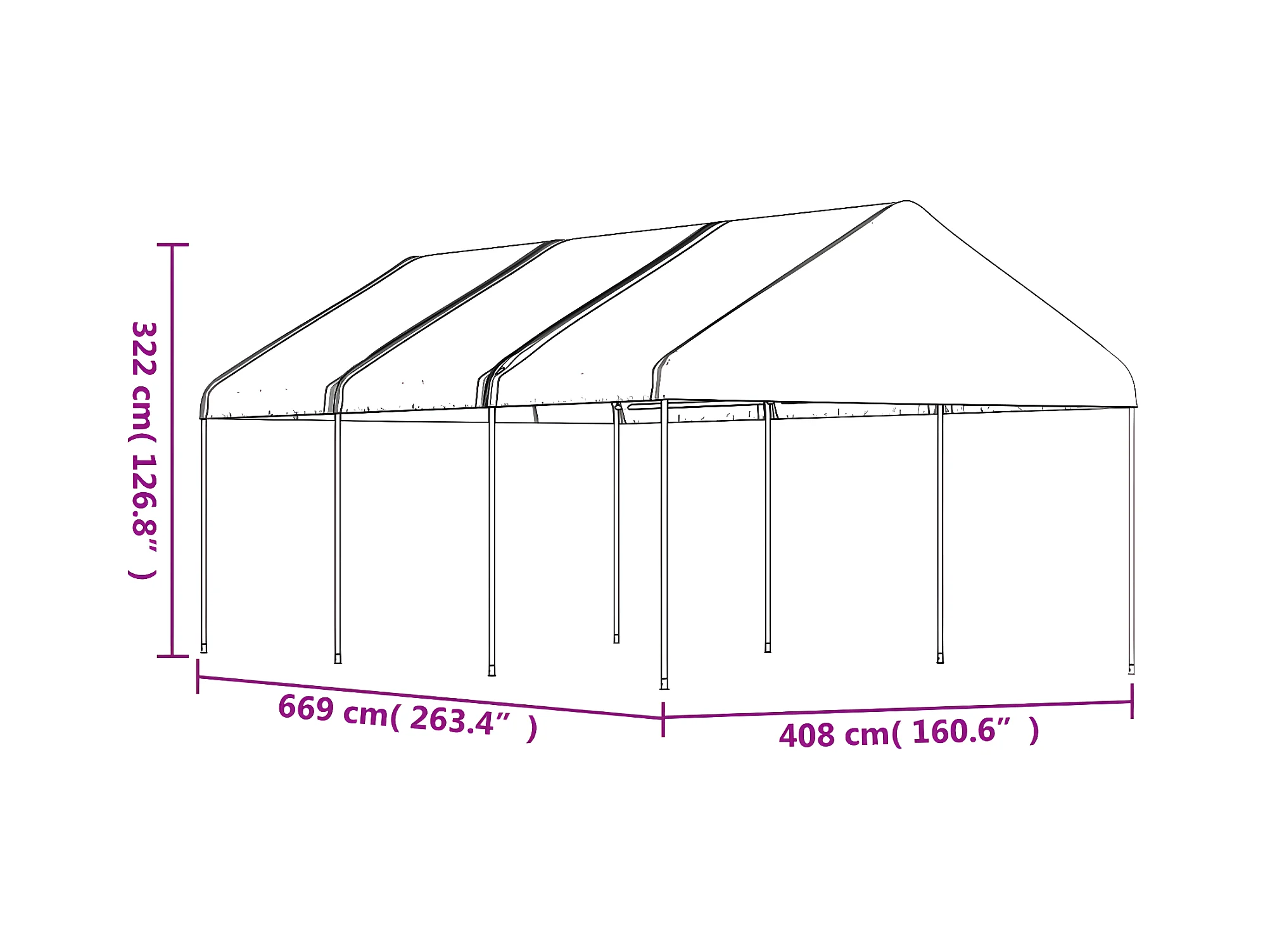 Gazebo - Tenda de recepção com telhado 6,69x2,28x2,69 m polietileno branco PT956837