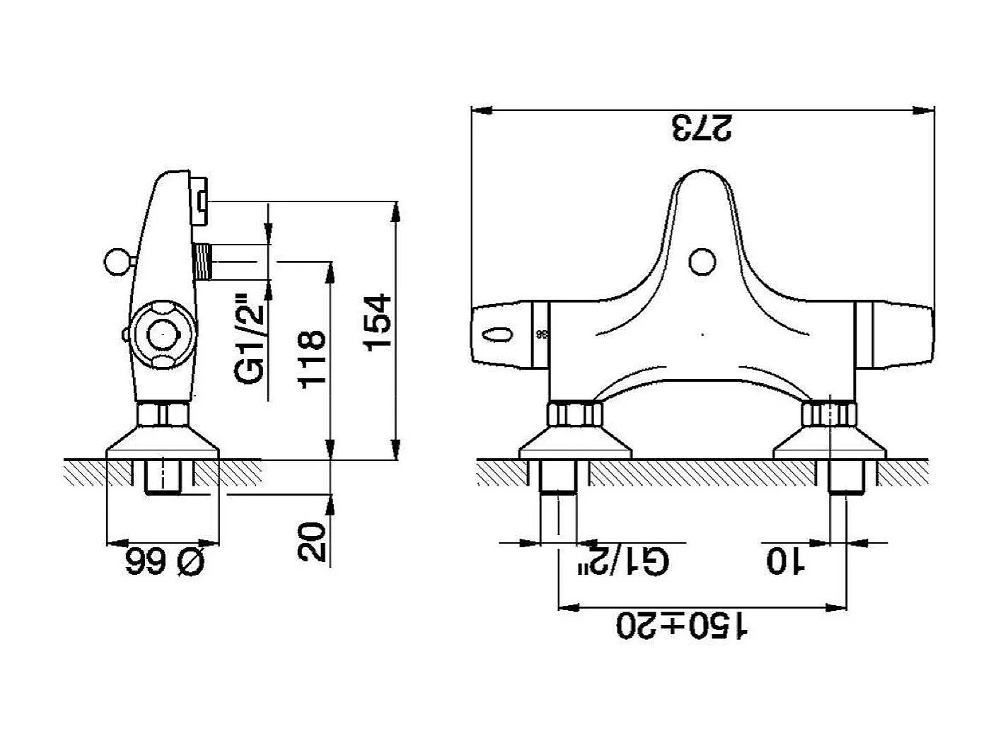 Glam Misturador termostático para banheira e duche cromado Huber