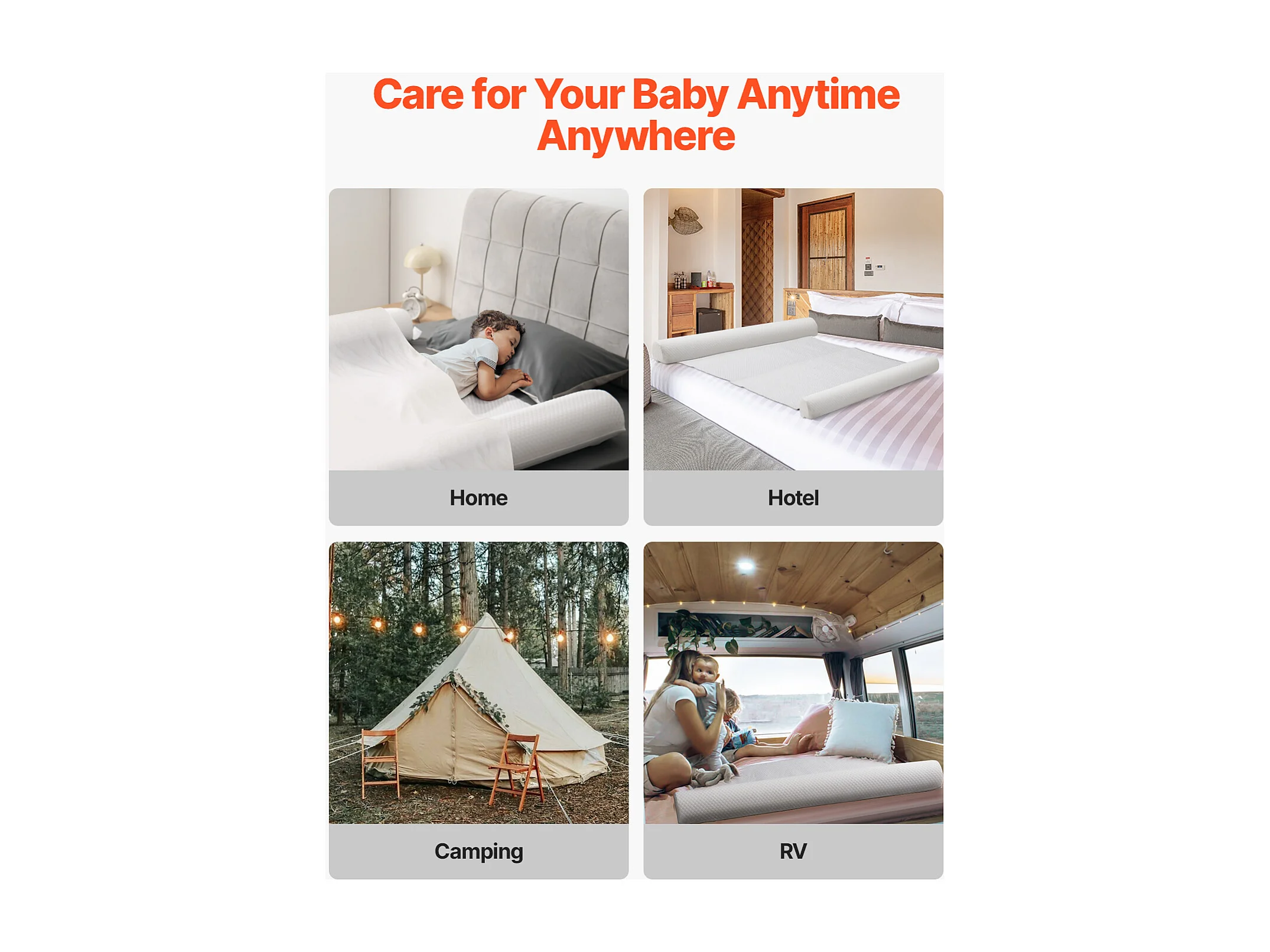 Grade de Berço, SucceBuy 132 cm - Conjunto de 2 Grades Infláveis para Berço, Barreira de Segurança com Aba, para Camas Infantis