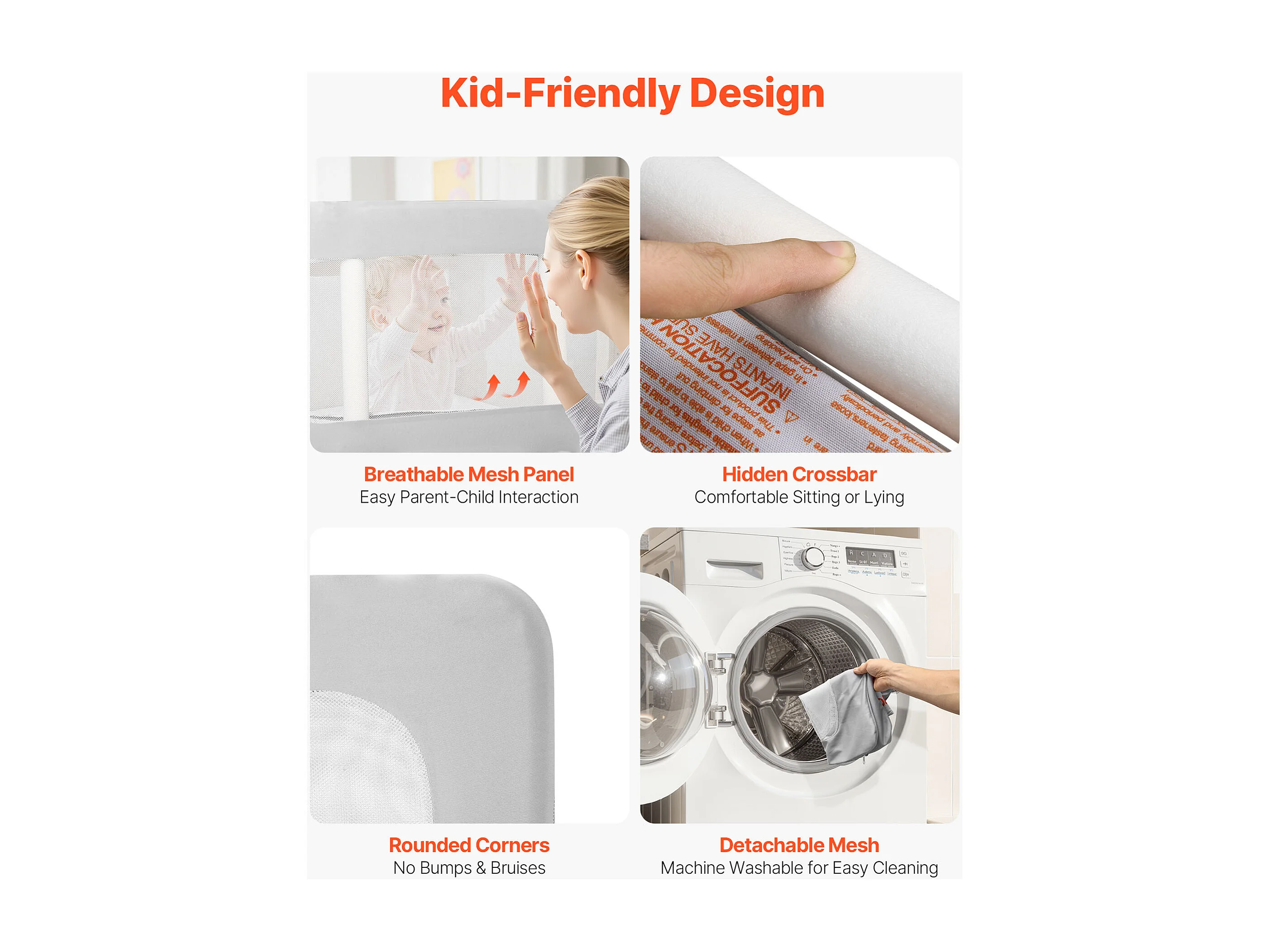 Grade de Segurança SucceBuy para Cama de Criança, Comprimento 80 cm, Grade de Cama para Bebés, com Tubo de Ferro Reforçado, Altura Ajustável 45-67 cm