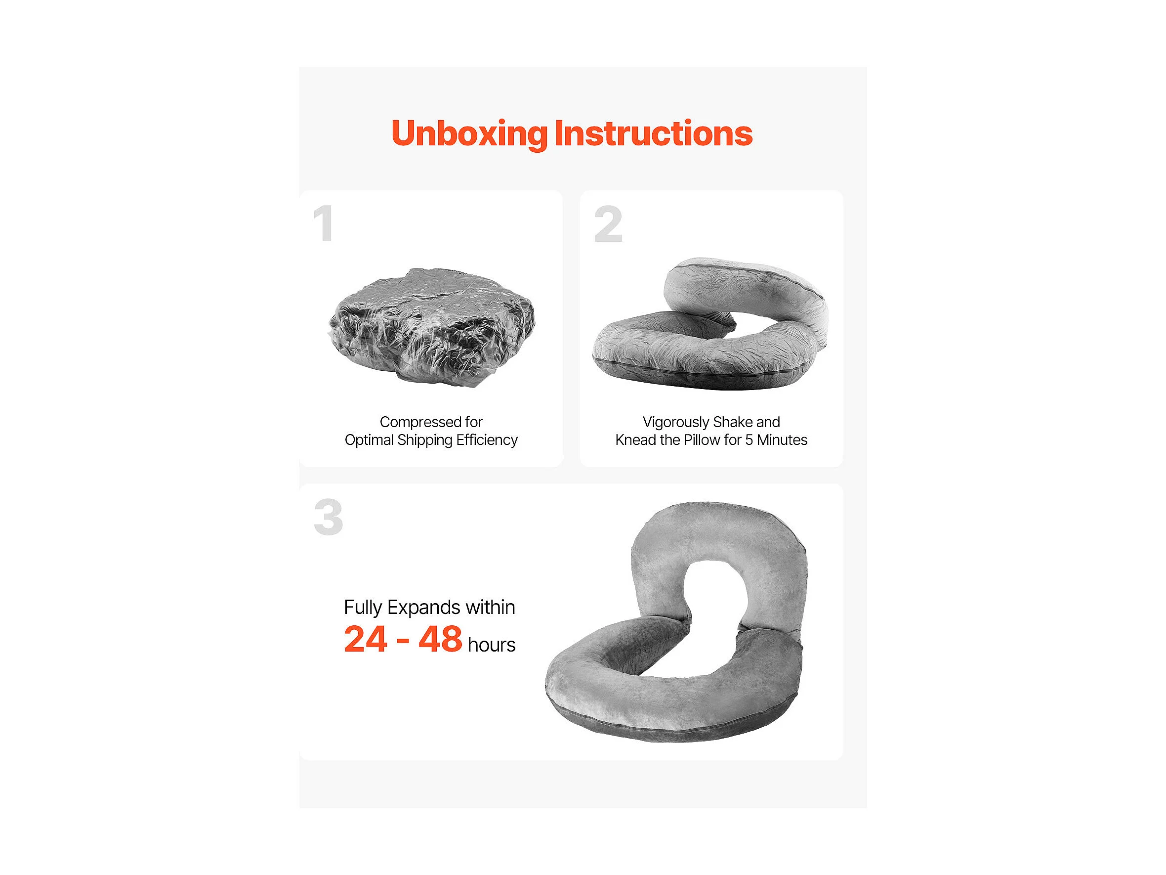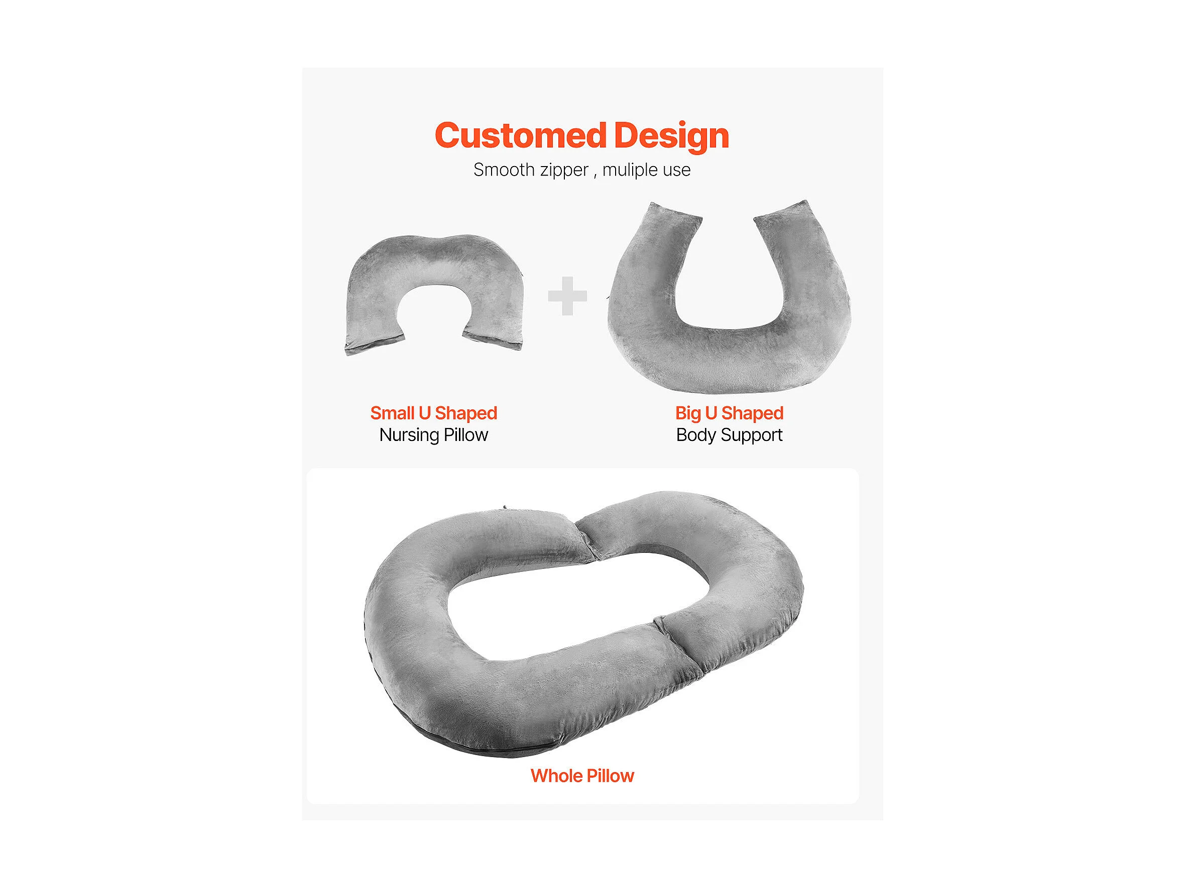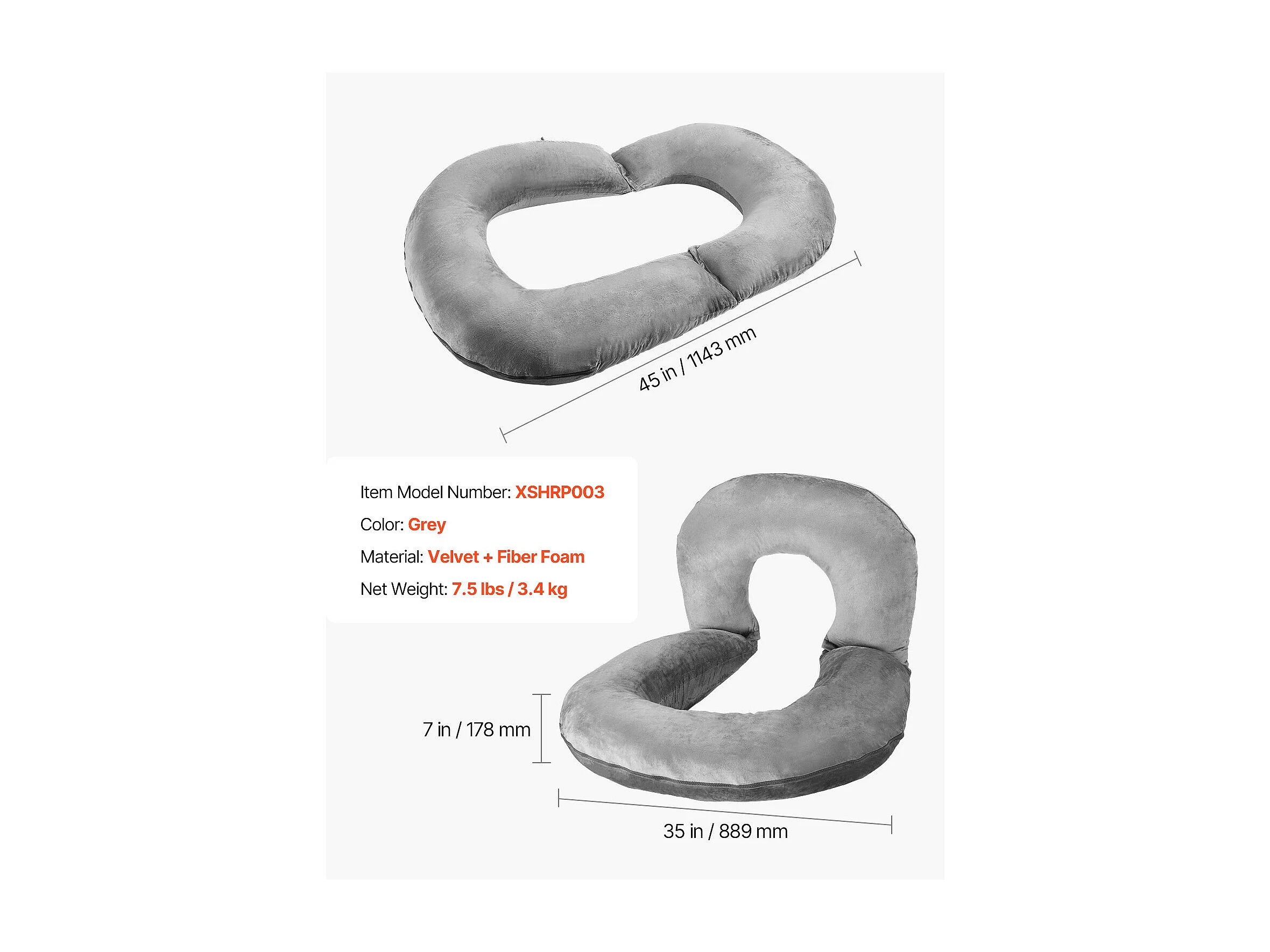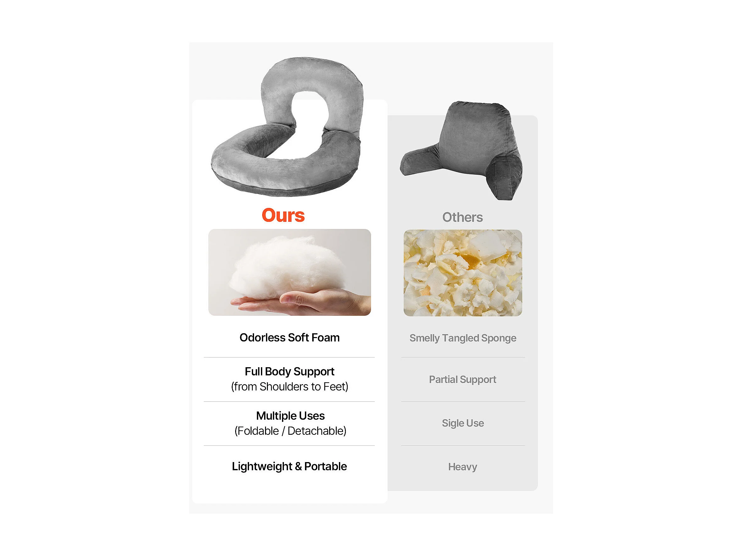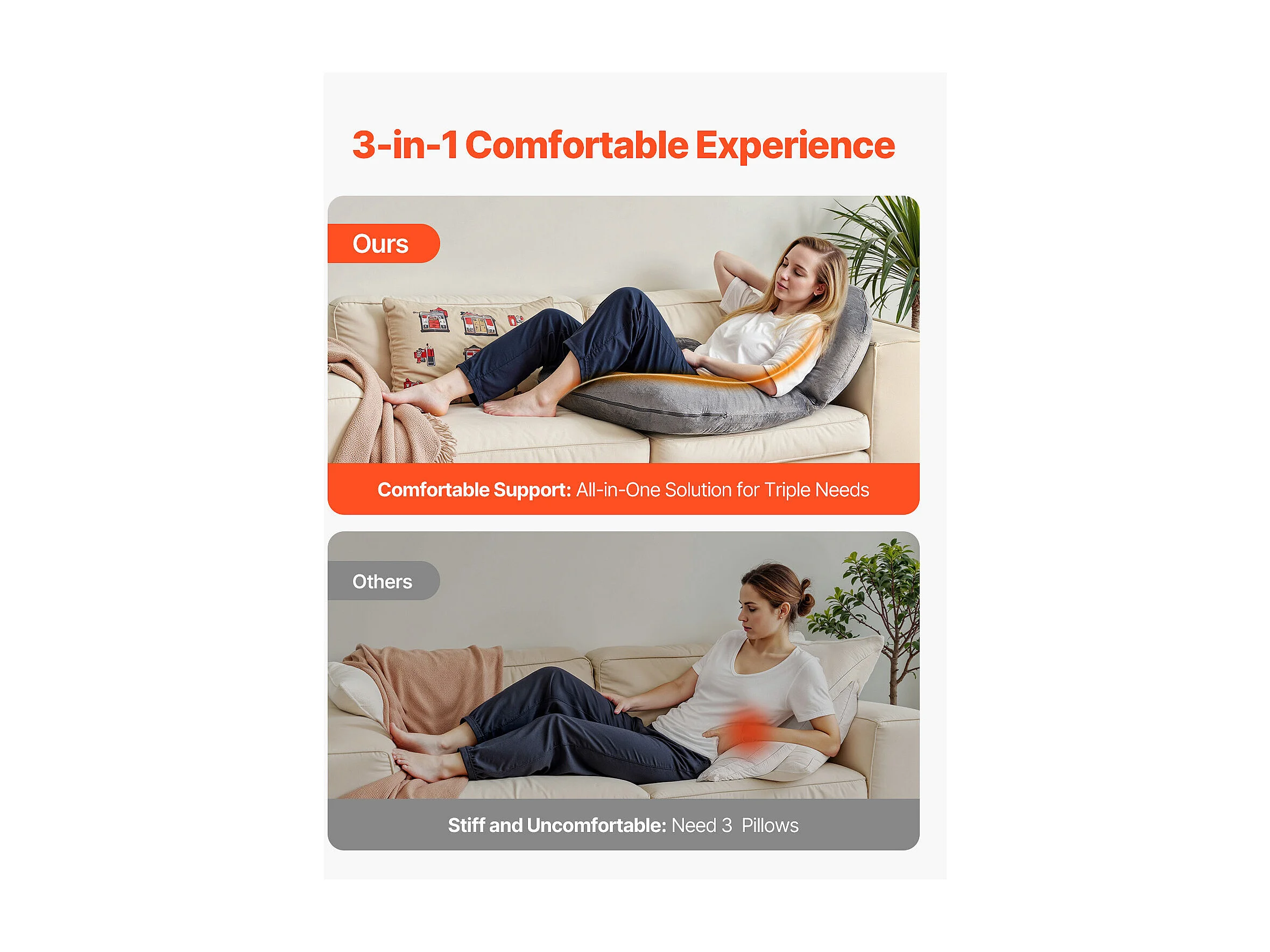 Grande Travesseiro de Leitura SucceBuy em Forma de U ,114.3 x 88.9 x 17.8 cm, Travesseiro de Cama Lavável em Veludo Macio, Travesseiro de Apoio , Cinza