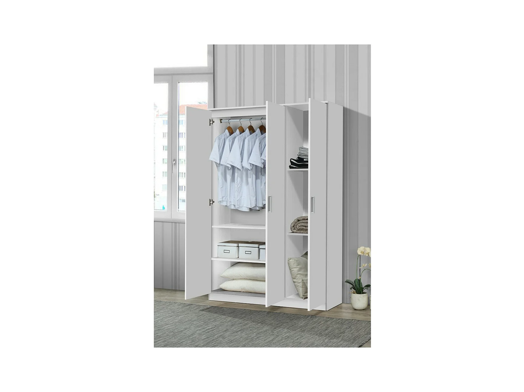 Armário de 3 portas na cor branca, coleção REY. Guarda-roupa ideal para o seu hall de entrada ou lavanderia.