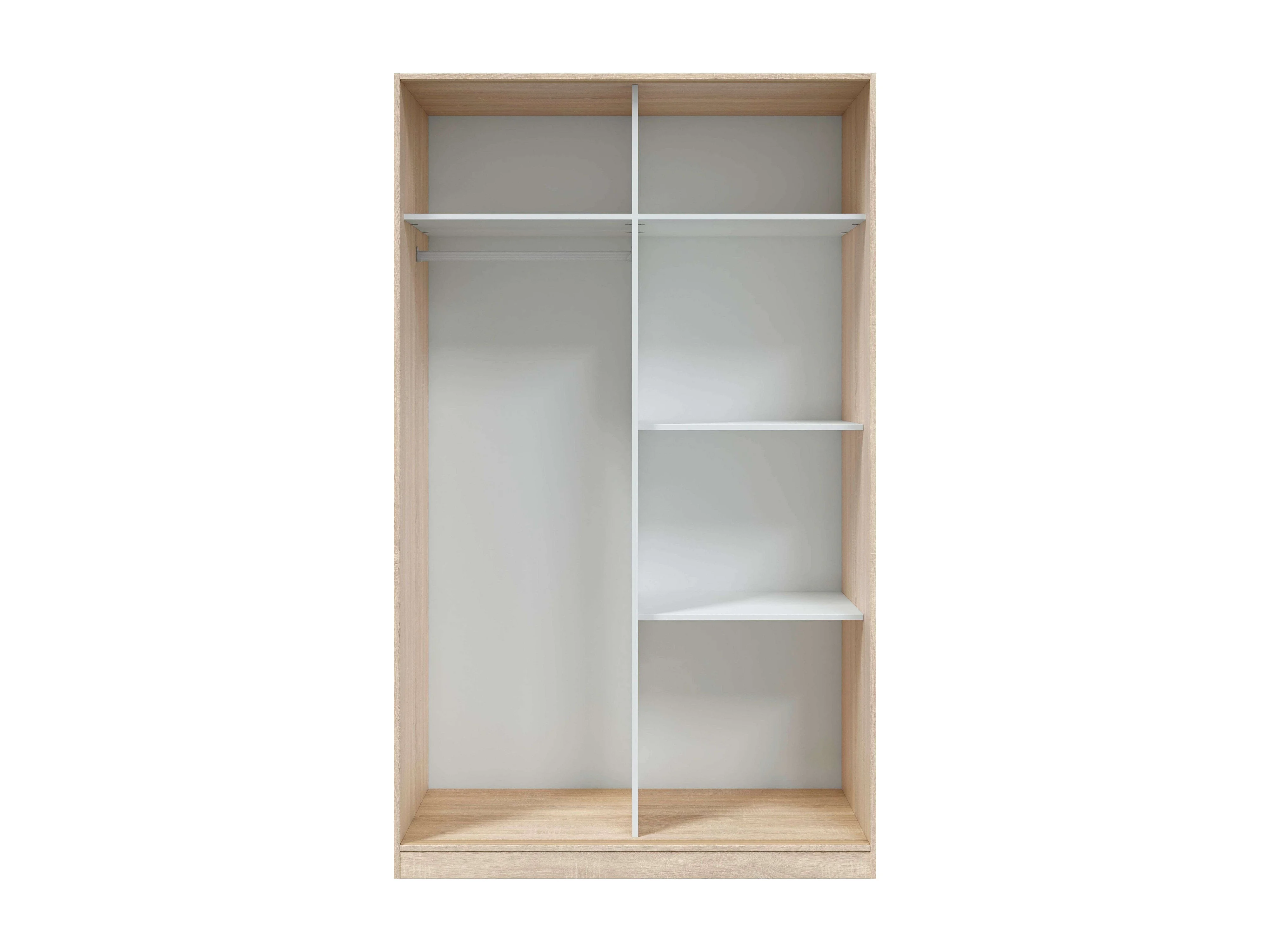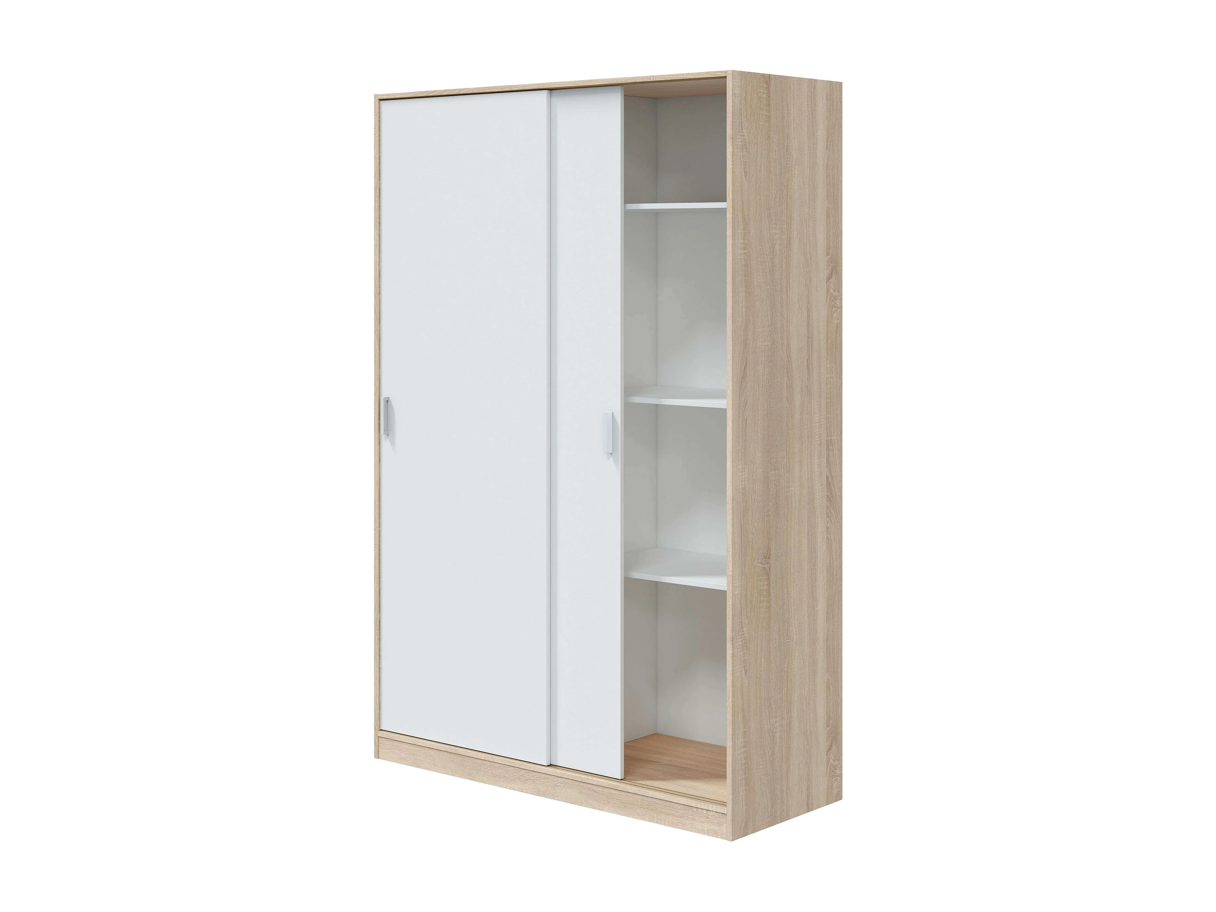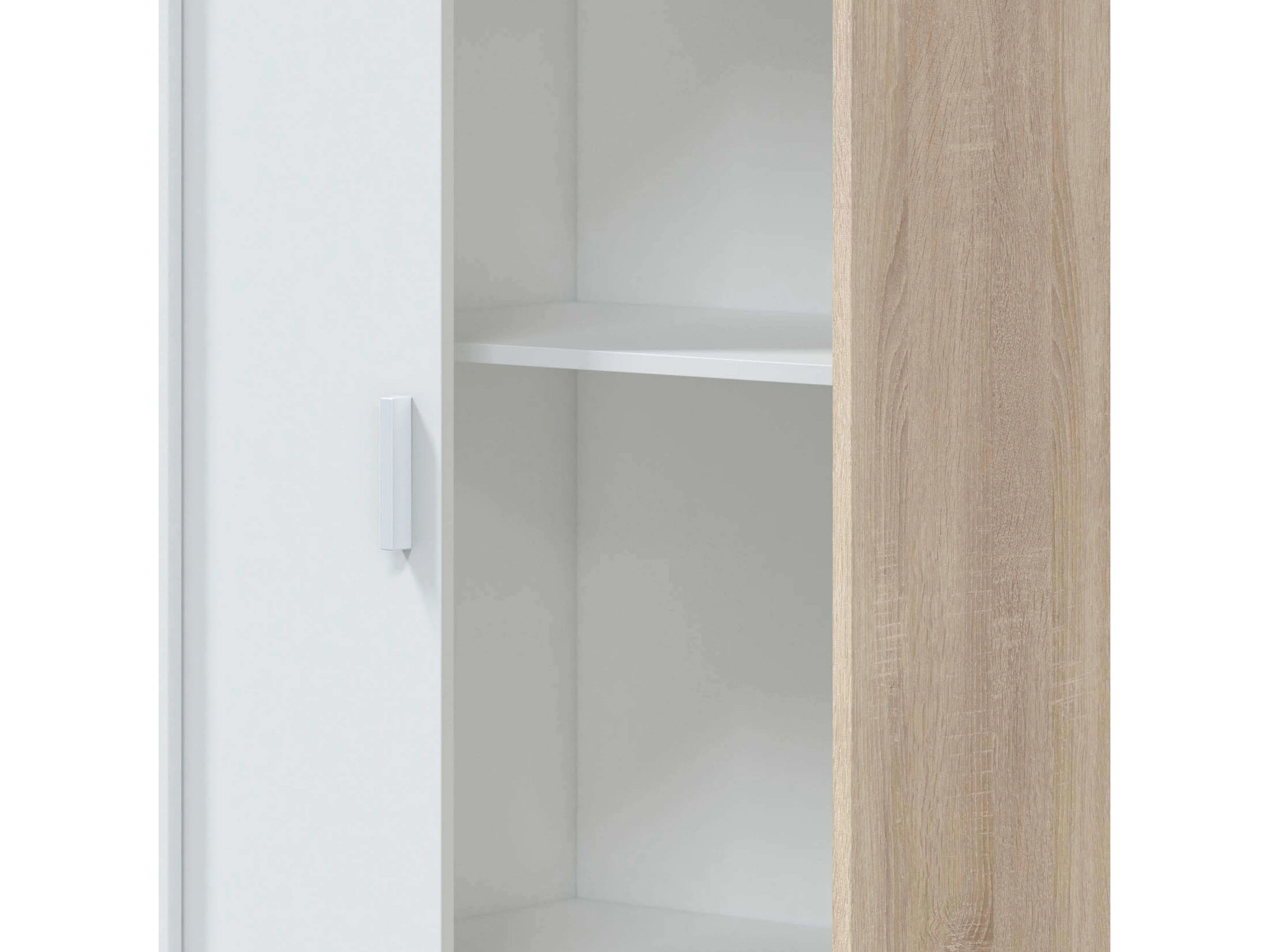 Guarda-roupa JULIA 2 portas de correr L120xA200cm Branco mate e carvalho claro, 3 prateleiras, cabideiro, design moderno