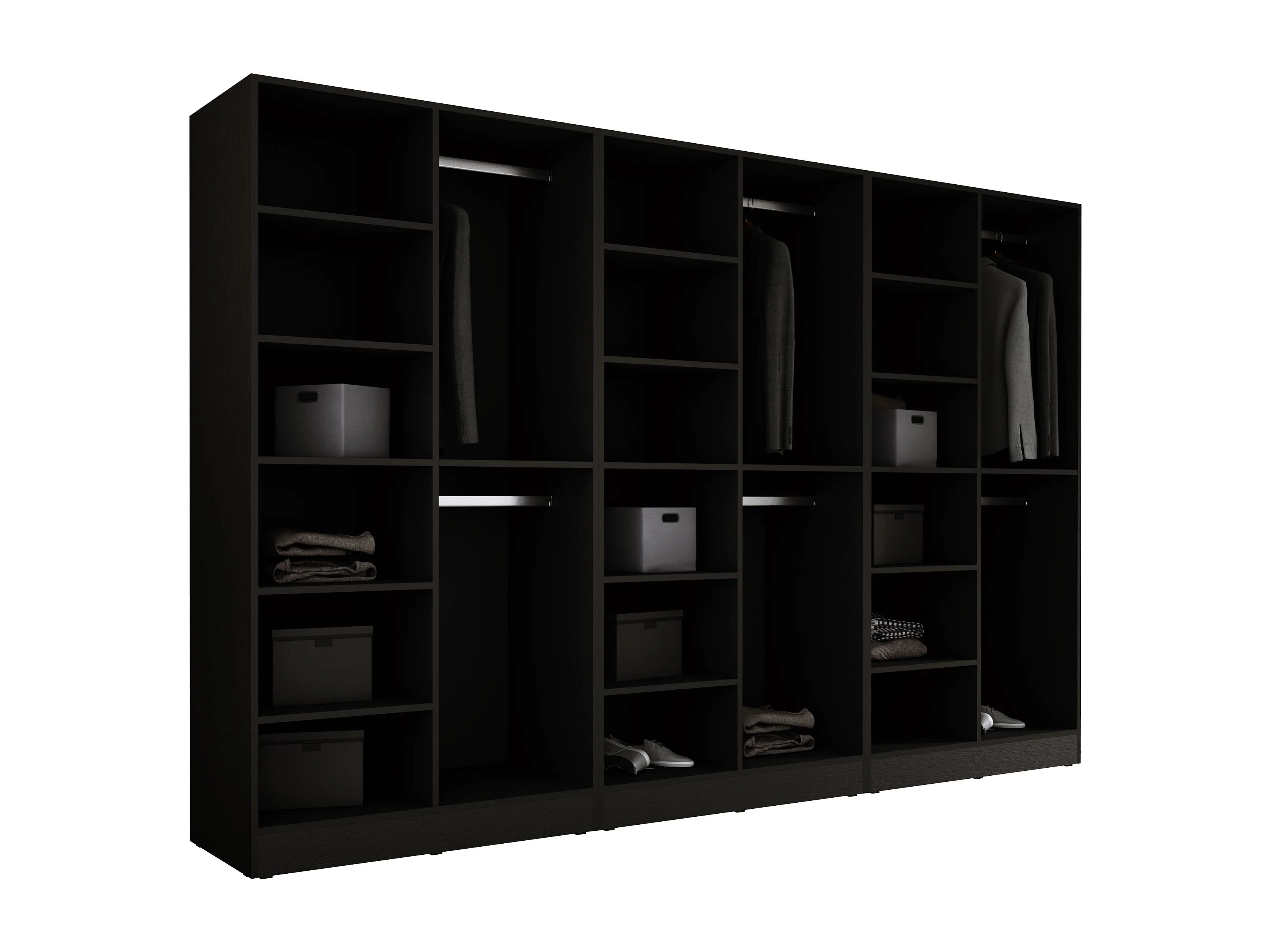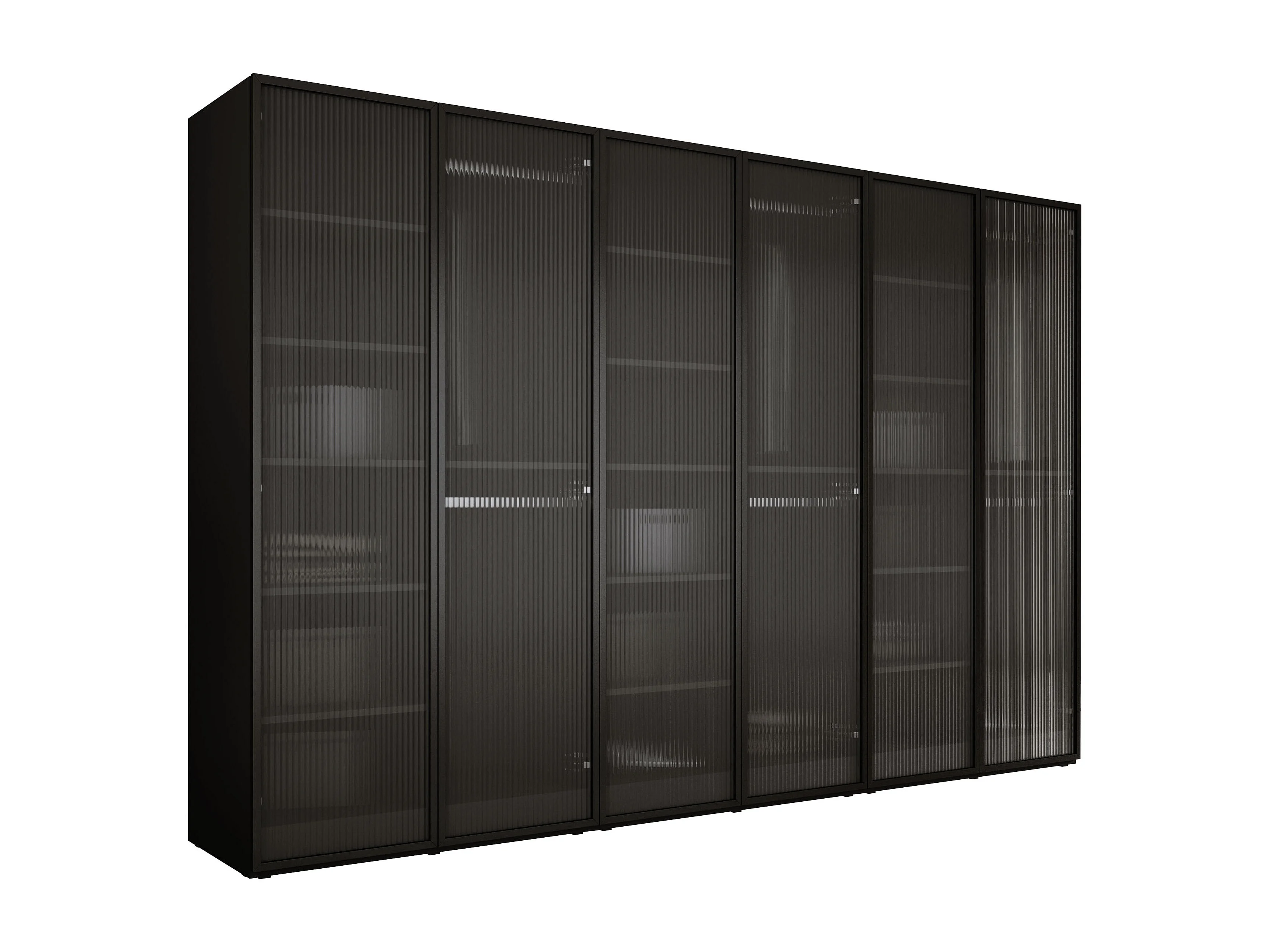 Guarda-roupa: Preto Grafite / Vidro Canelado, 300 x 200 x 51 cm