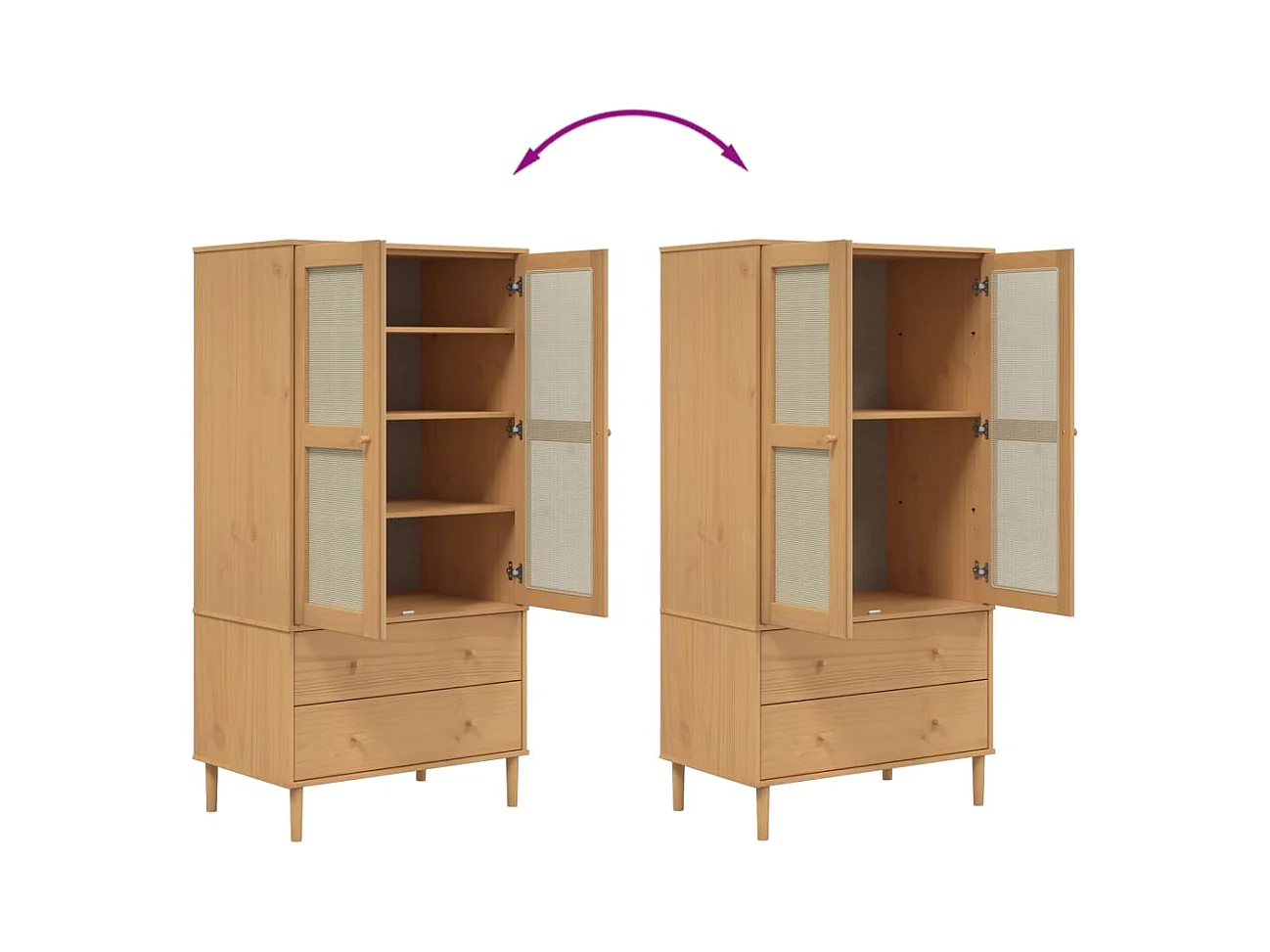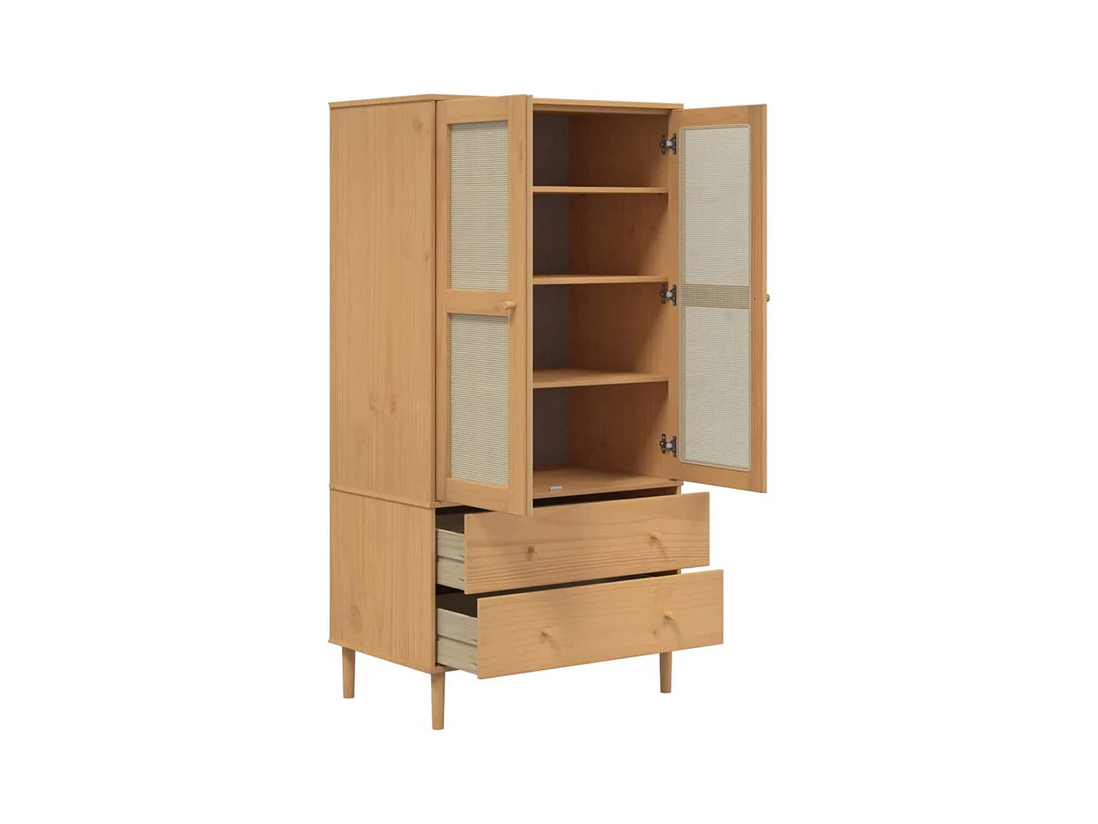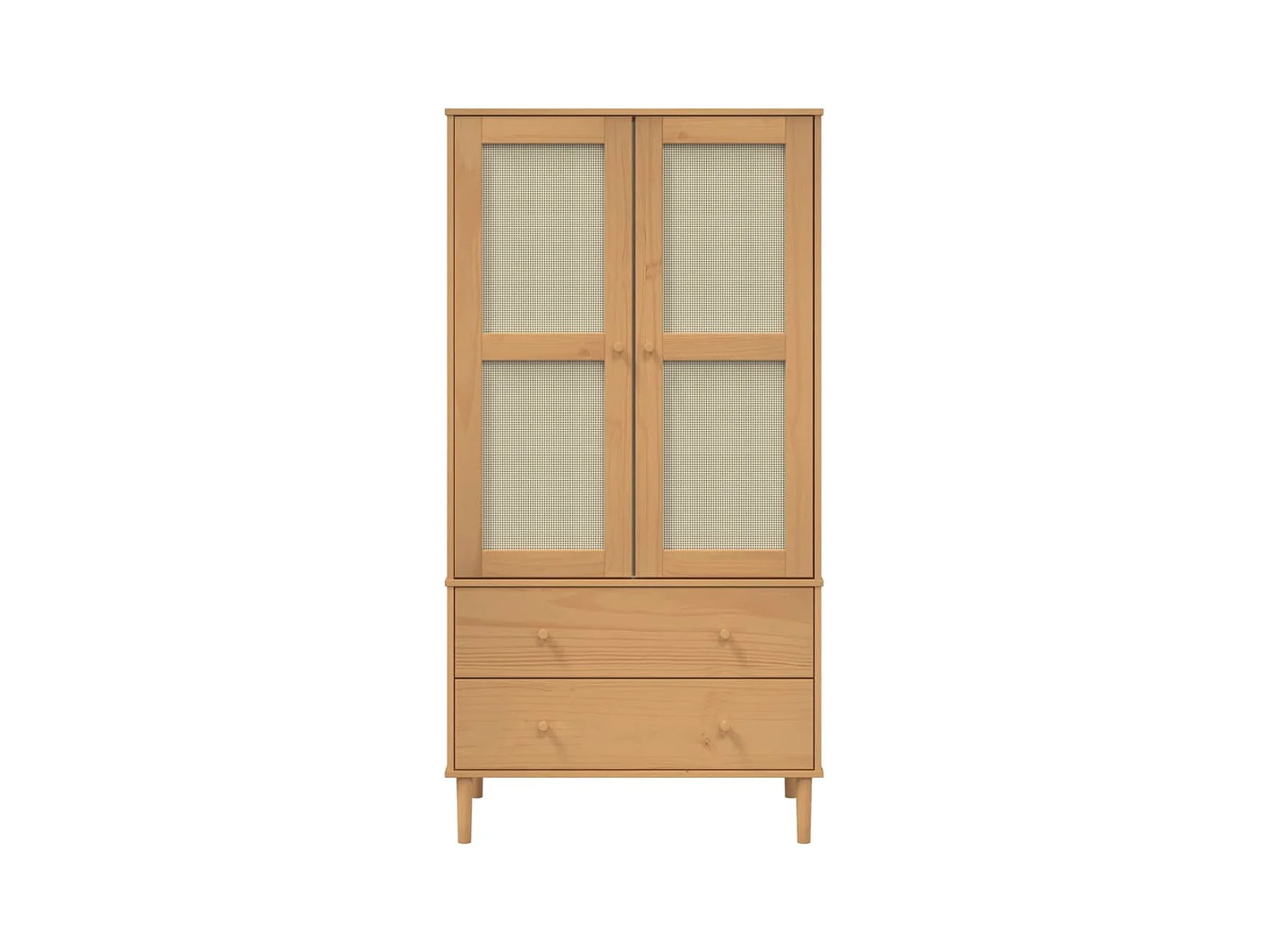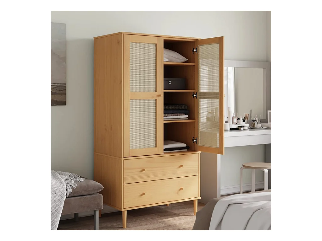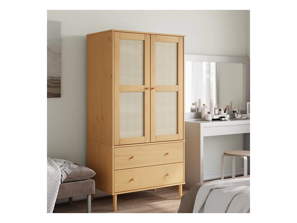 Guarda-roupa SENJA em rattan com aspecto de madeira de pinho maciça castanha