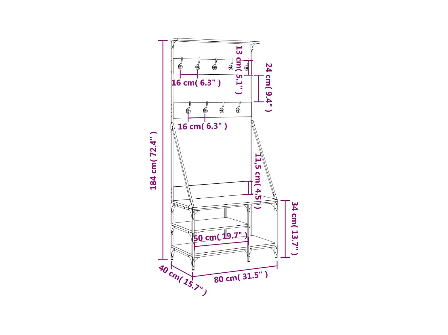 Sapateira de carvalho Sonoma 80x38x78 cm madeira projetada