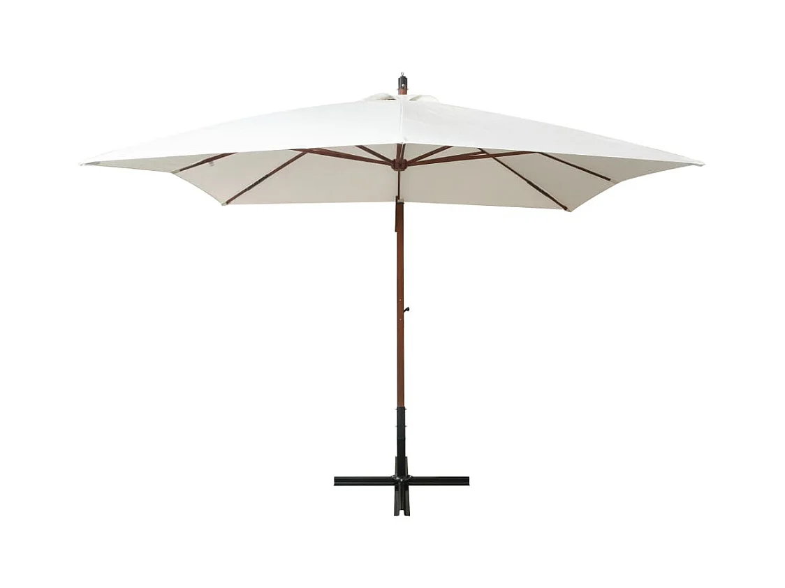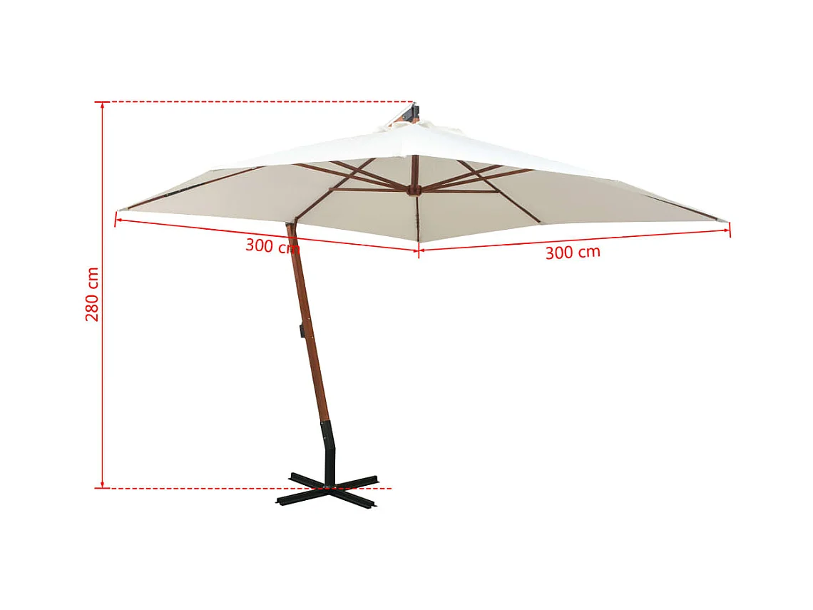 Guarda-sol cantilever c/ poste de madeira 400x300cm branco nata