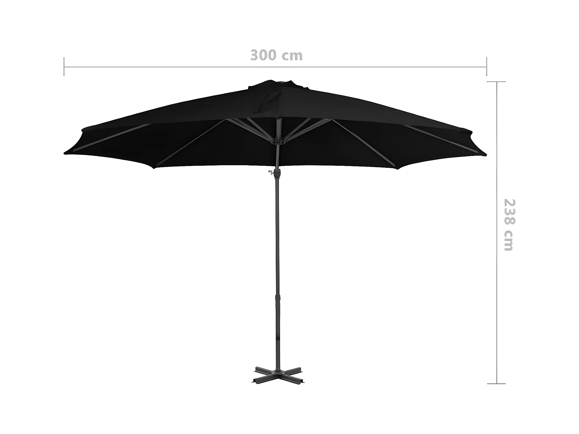 Guarda-sol cantilever poste alumínio 300 cm preto