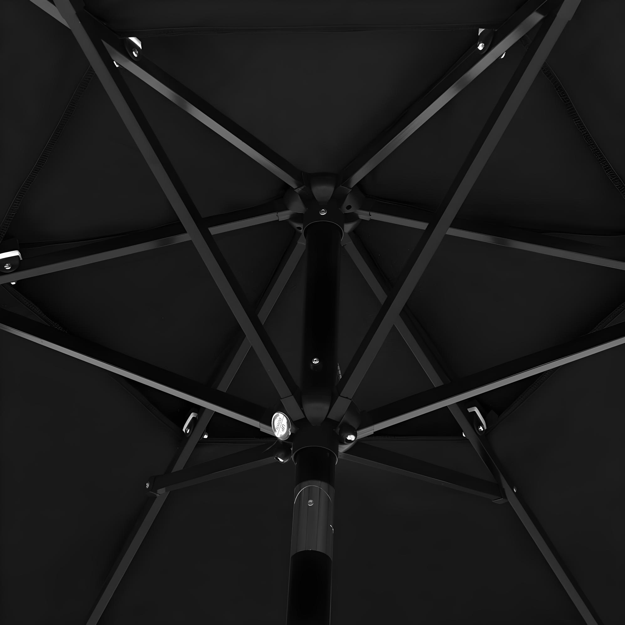 Guarda-sol de 3 camadas com poste de alumínio 2,5 m preto PT633881