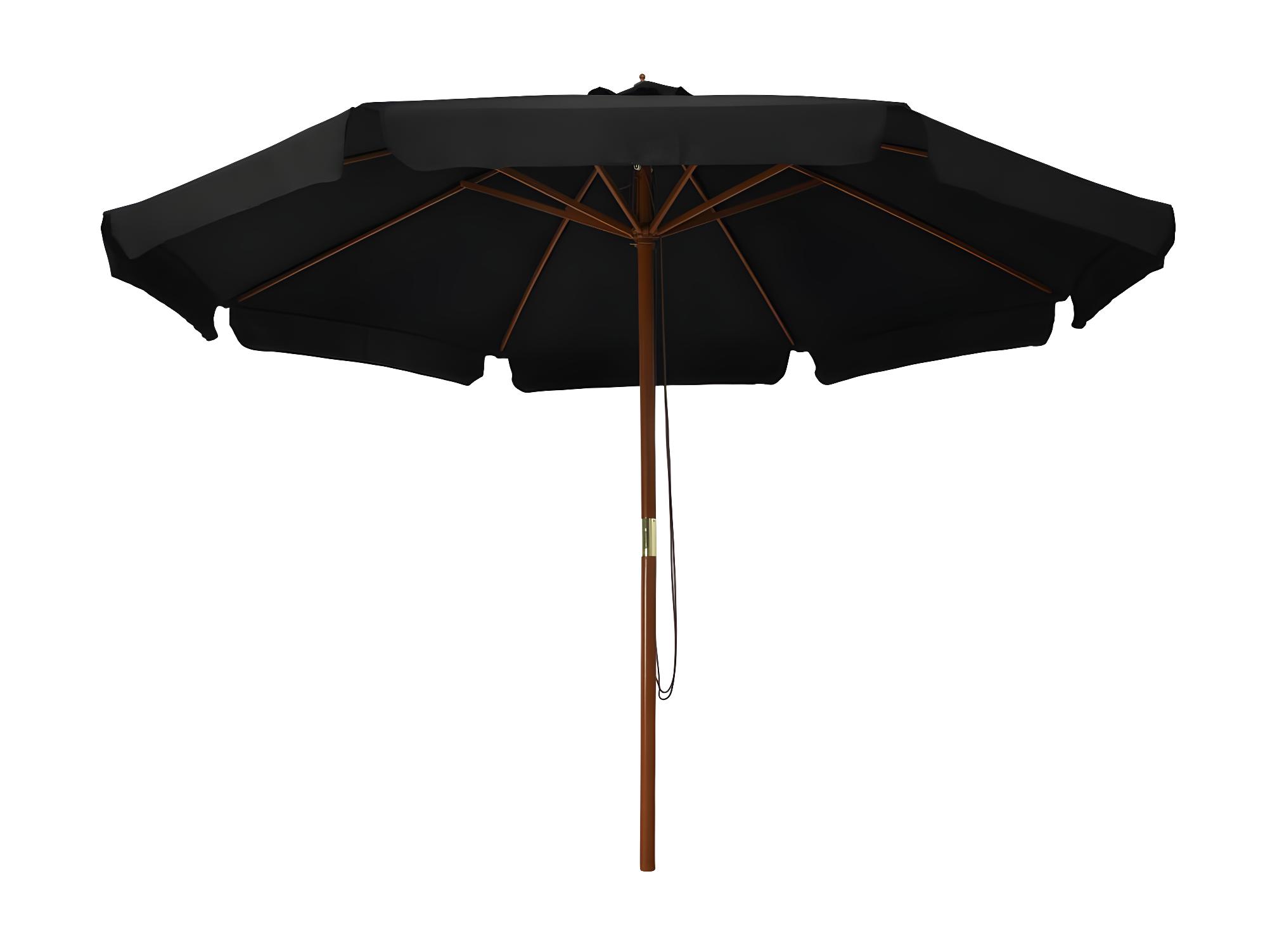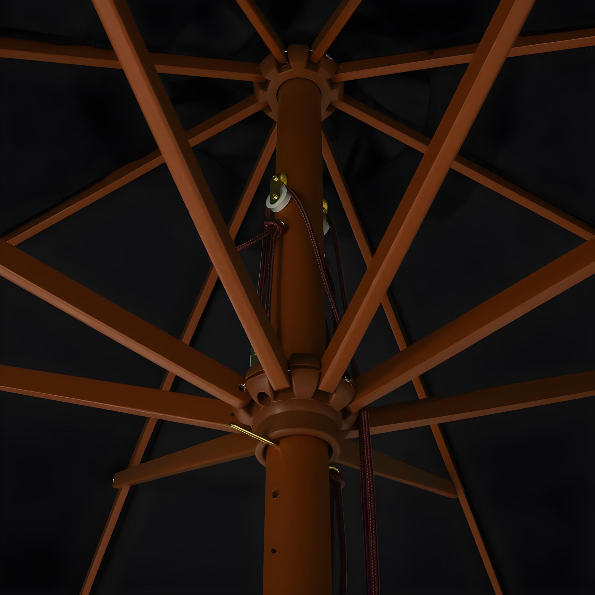 Guarda-sol de exterior c/ poste de madeira 330 cm preto PT401555