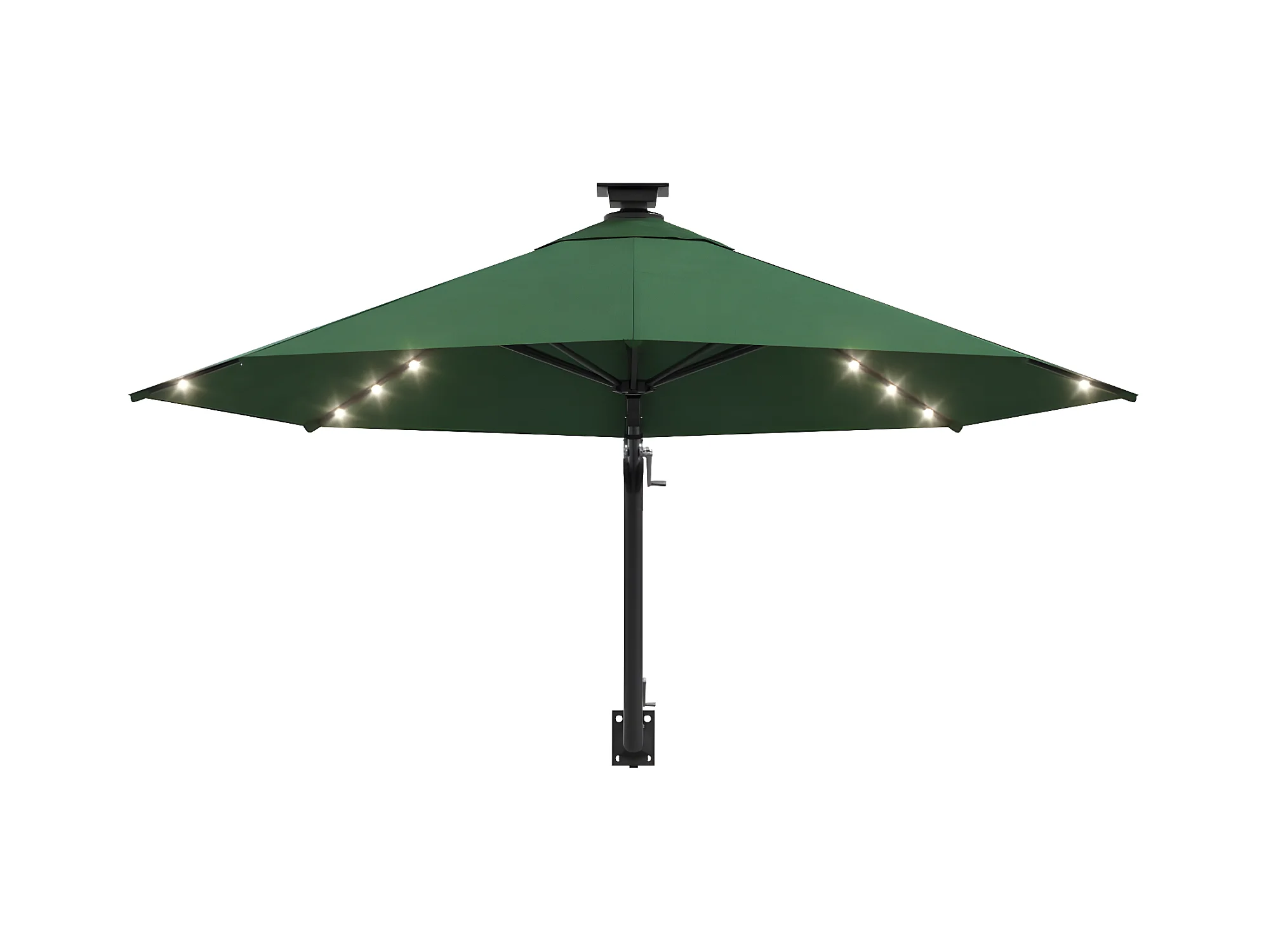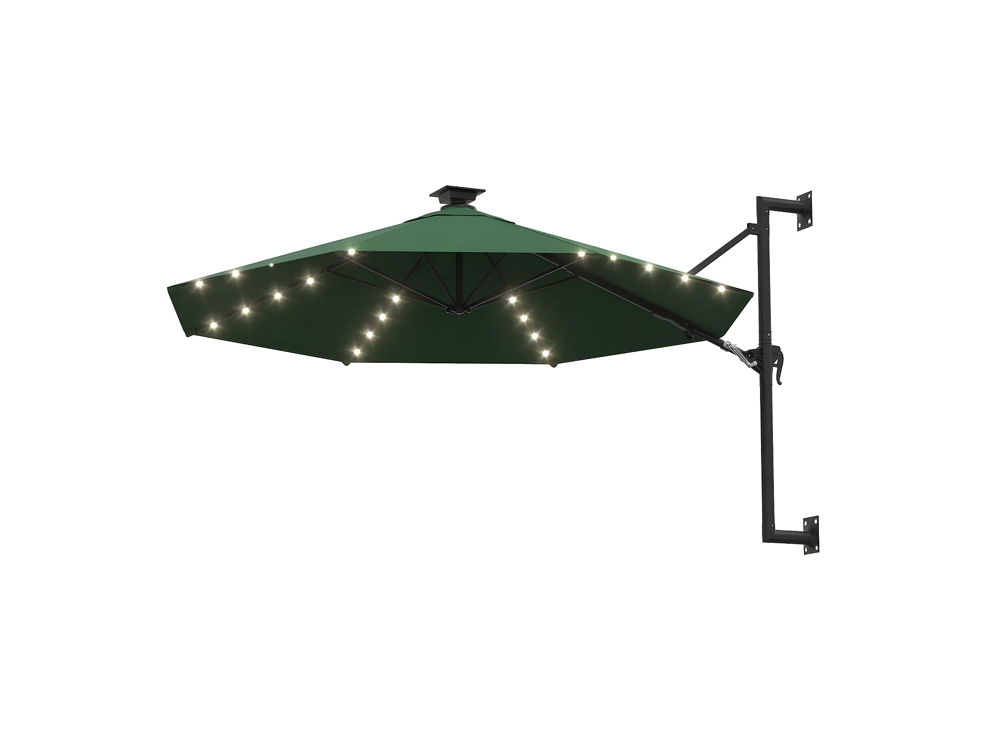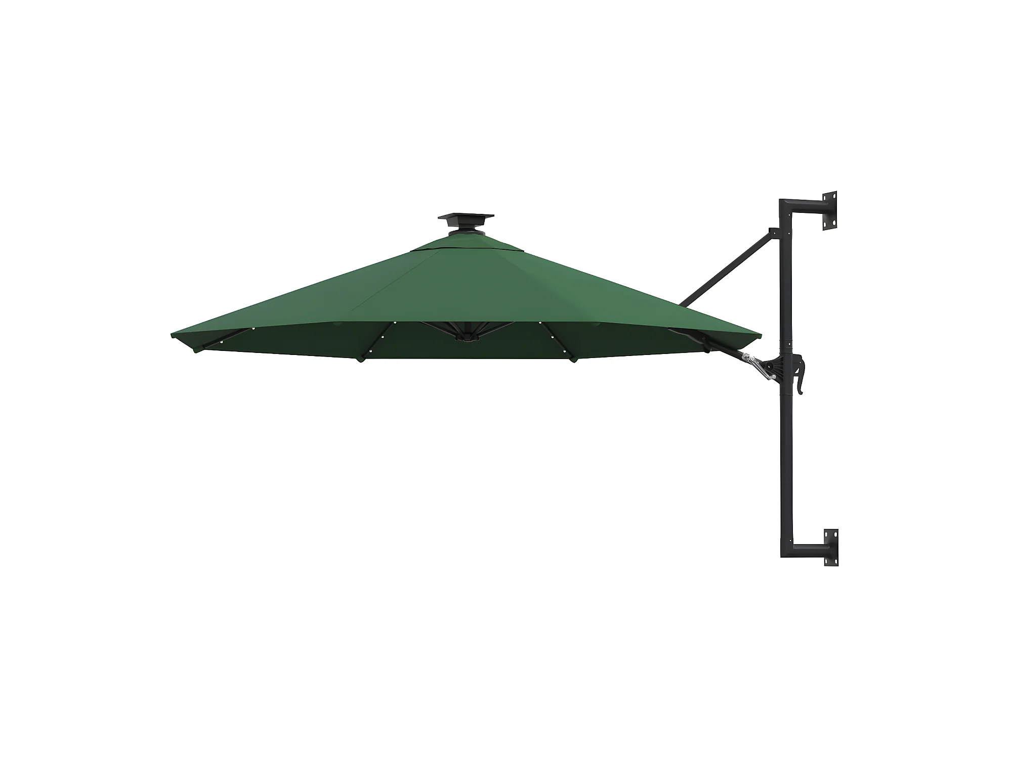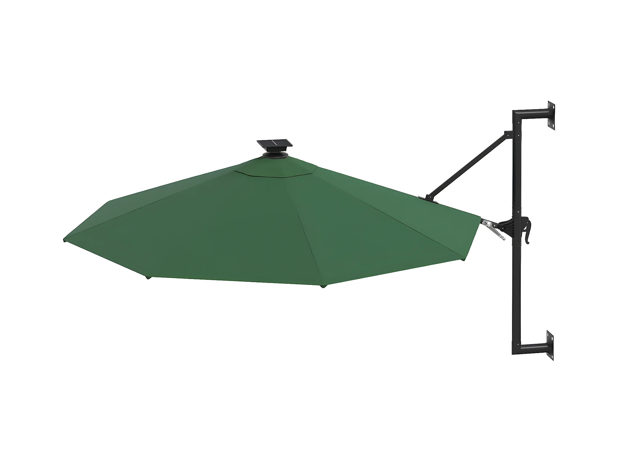 Guarda-sol de parede c/ luzes LED e poste metálico 300 cm verde PT745322